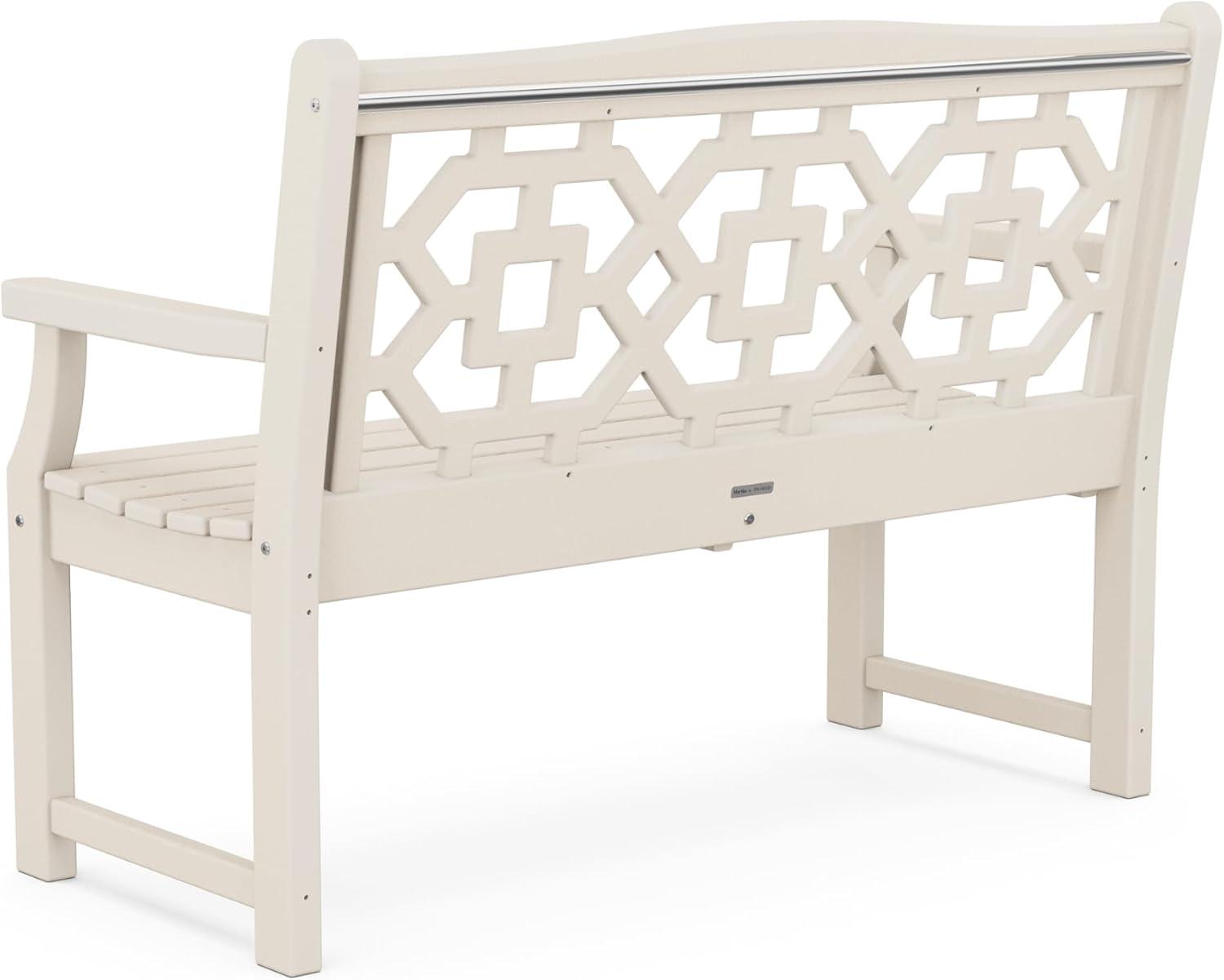 The Martha Stewart by POLYWOOD Chinoiserie 48″ Garden Bench is a natural fit for creating beautiful outdoor spaces. Notes of traditional design are seen in the graceful lines and intricate latticework, delicate details that are balanced by the bench's sturdy frame and all-weather durability. Whether nestled among the blooms or perched on your porch, its peaceful presence will beckon more moments outside.