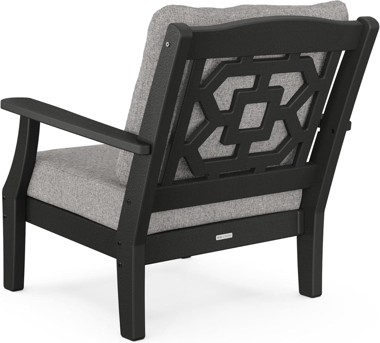 Martha Stewart by POLYWOOD® Chinoiserie 5-Piece Deep Seating Set with Fire Pit Table (Sand/Glacier Spa)(Black / Grey Mist)