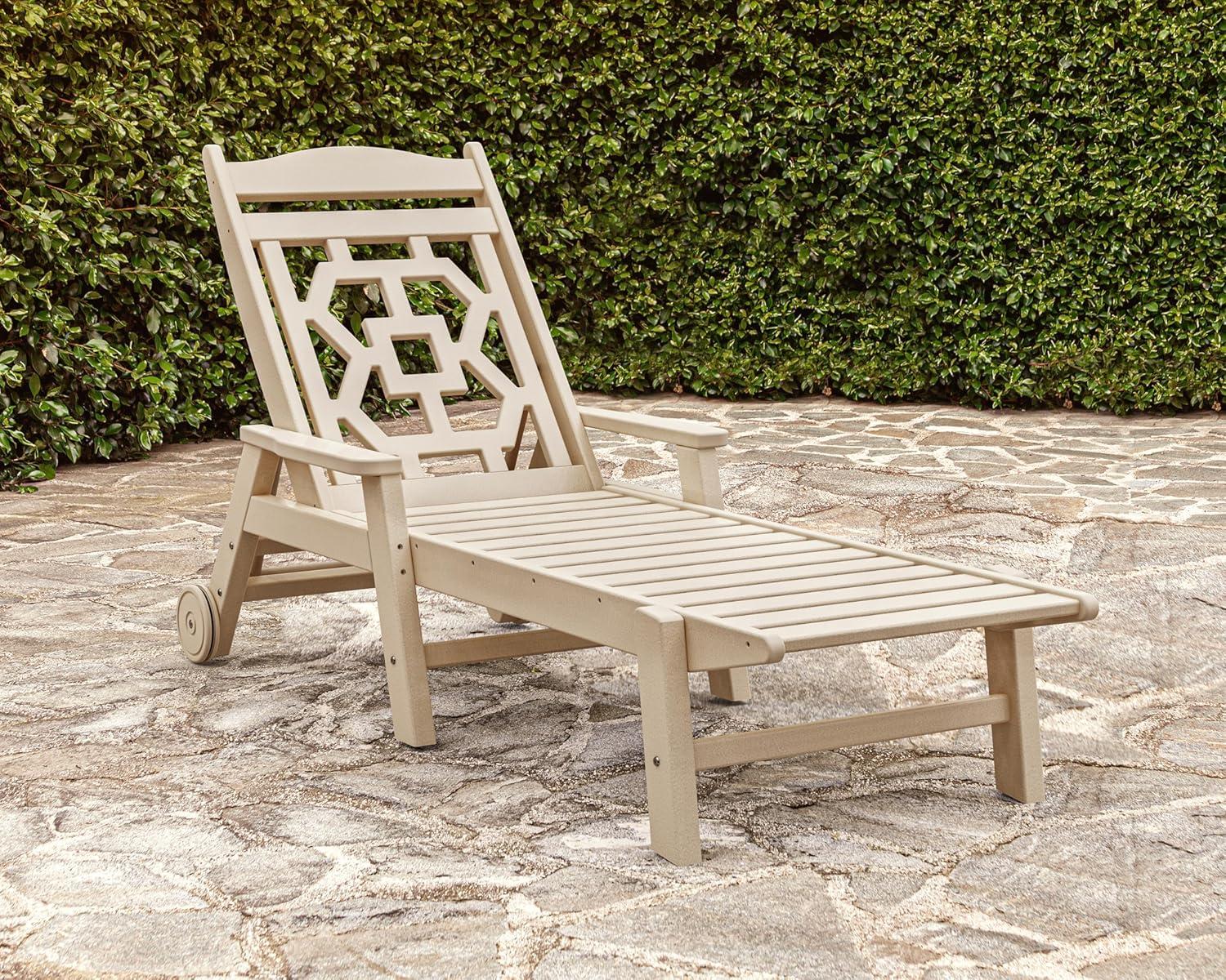 The Martha Stewart by POLYWOOD Chinoiserie Chaise Lounge is the very essence of rest and rejuvenation, elevating your patio or poolside into a tranquil oasis. Swiftly adjust the back and move the chair to your preferred positions before settling into its inviting embrace. While the graceful lines and intricate latticework are delicate in nature, the sturdy all-weather frame is ultra-durable by design.