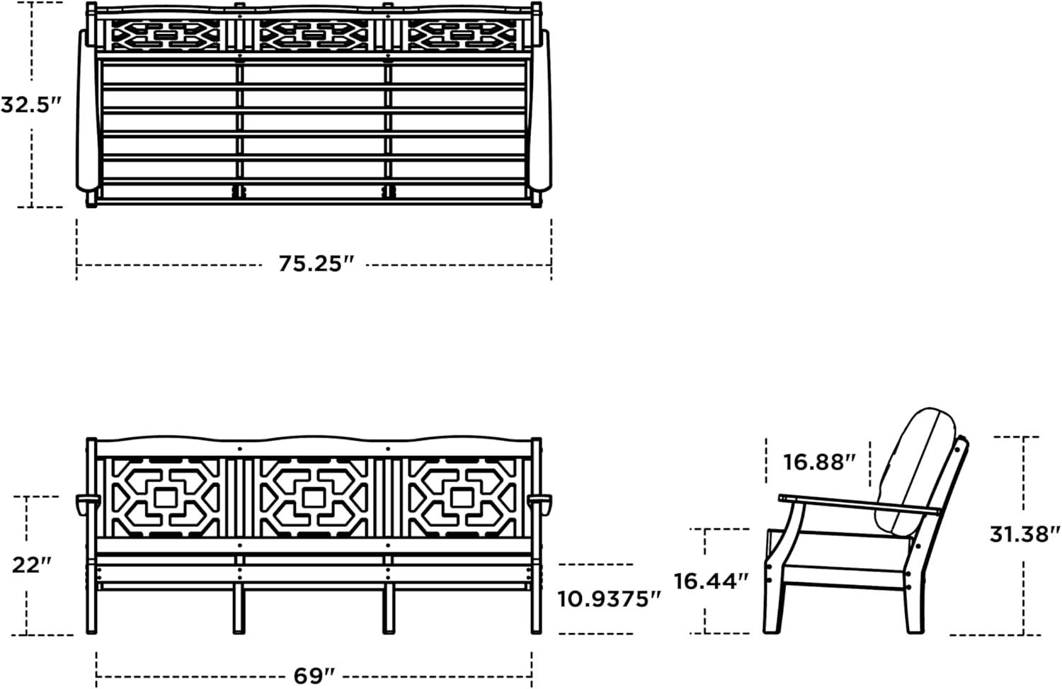 Comfortable luxury that feels right at home. Warm and welcoming, the Martha Stewart by POLYWOOD Chinoiserie Deep Seating Sofa invites you in with its classic styling, soft cushions, and embracing silhouette. Notes of traditional design are seen in the graceful lines and intricate latticework, delicate details that are balanced by the sofa's sturdy frame and all-weather durability.