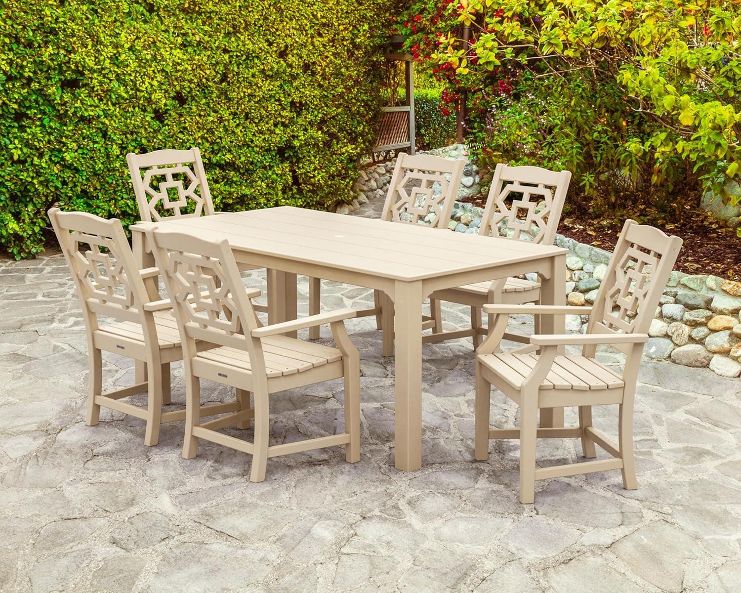 Martha Stewart by POLYWOOD® Exclusive Chinoiserie Arm Chair 7-Piece Parsons Dining Set (Mahogany)(Teak)