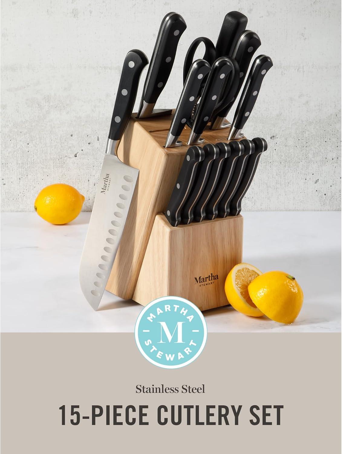 Martha Stewart Carverton 6" Cleaver Knife, High Carbon Stainless Steel Kitchen Knives w/Black Triple Riveted Handle(Black Knife Block)