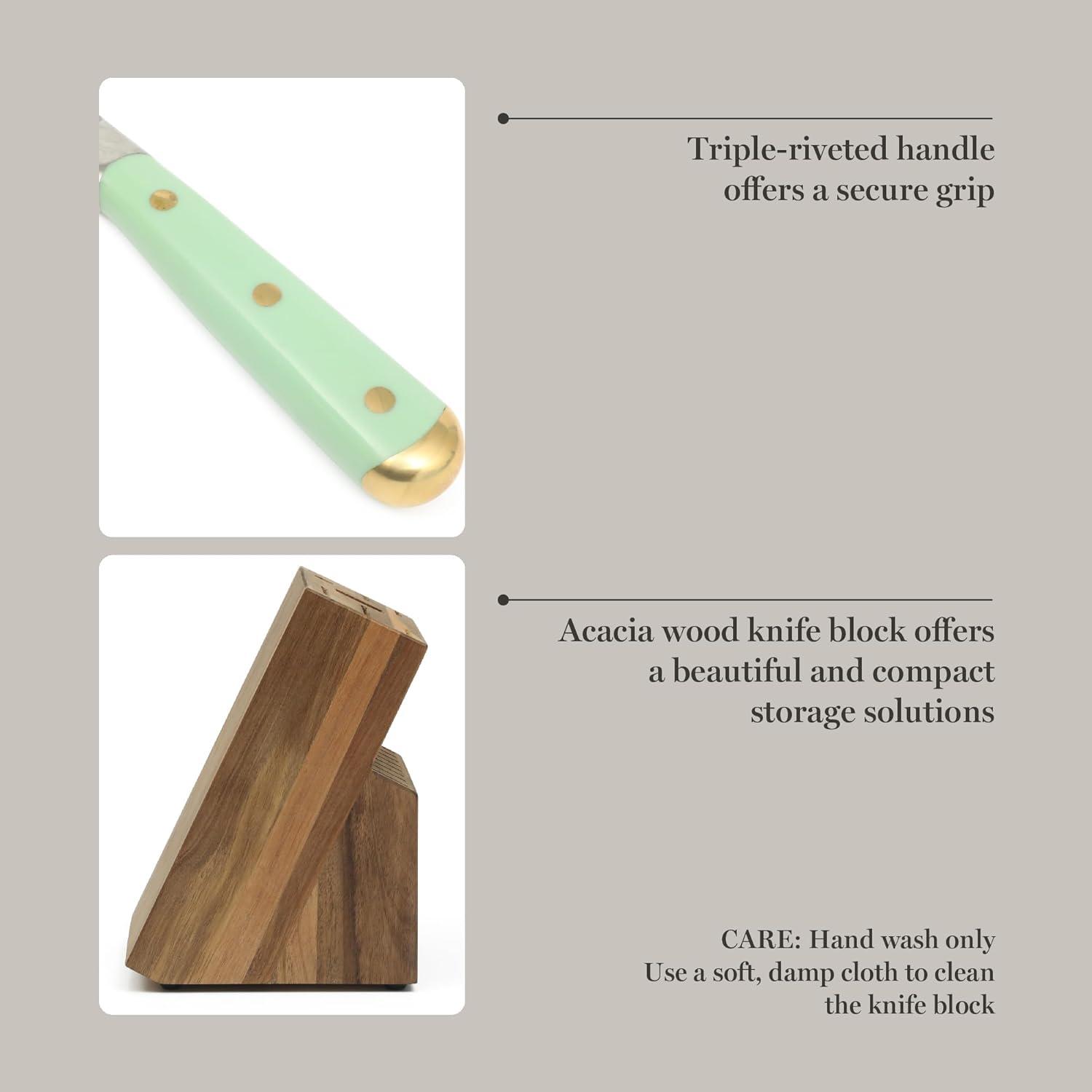 Martha Stewart Carverton 6″ Cleaver Knife, High Carbon Stainless Steel Kitchen Knives w/Black Triple Riveted Handle(Sage Green W/ Gold Knife Block)