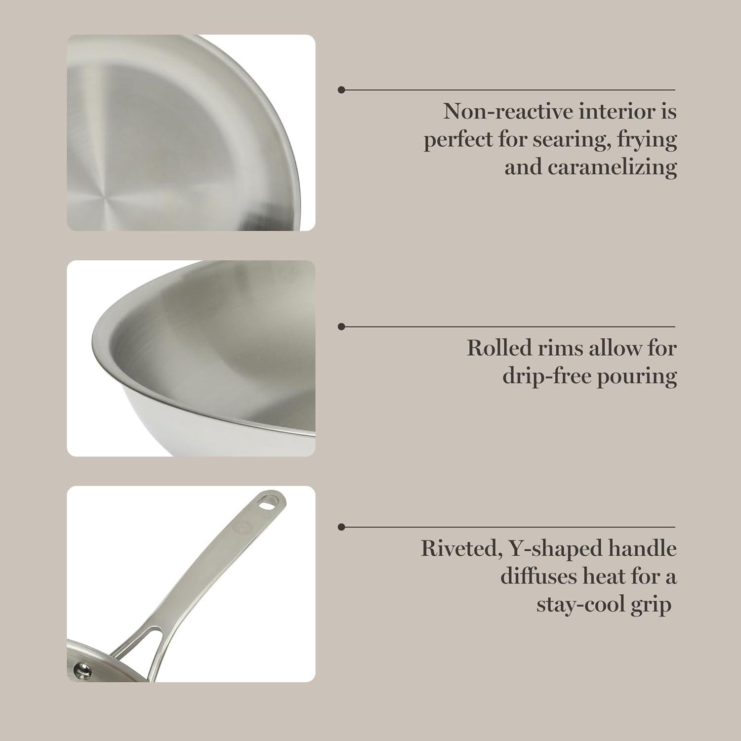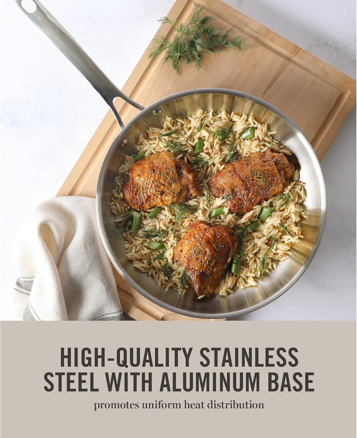 BUILT TO LAST: 18/8 stainless steel construction promotes durability, elegance, and performance – perfect for everyday sautéing, searing, frying and more sans any metallic aftertaste
