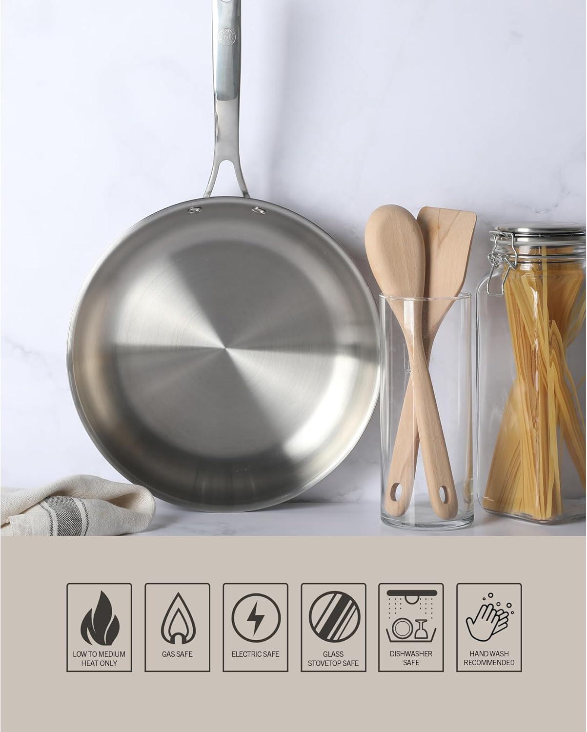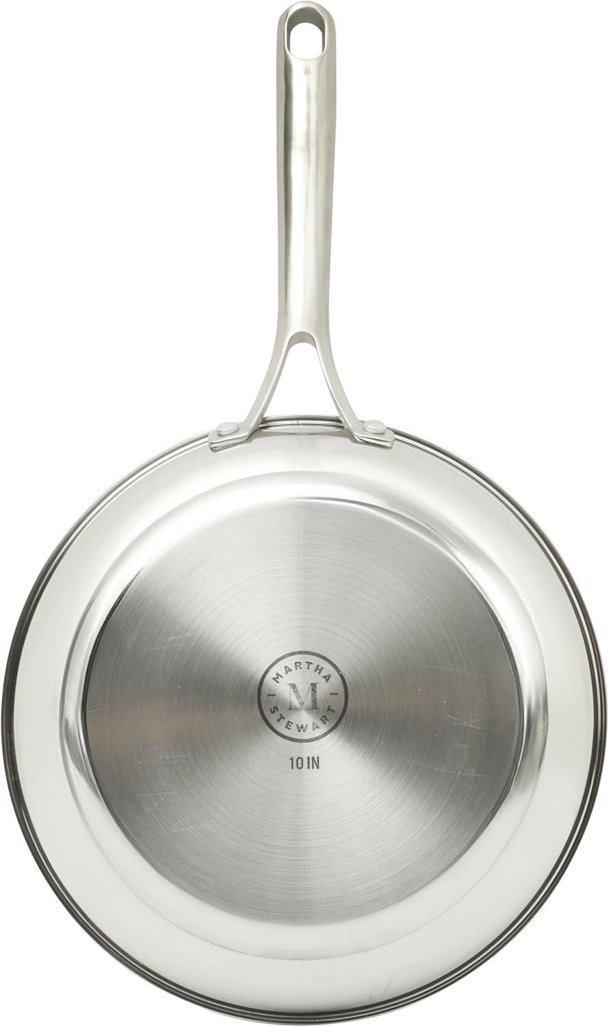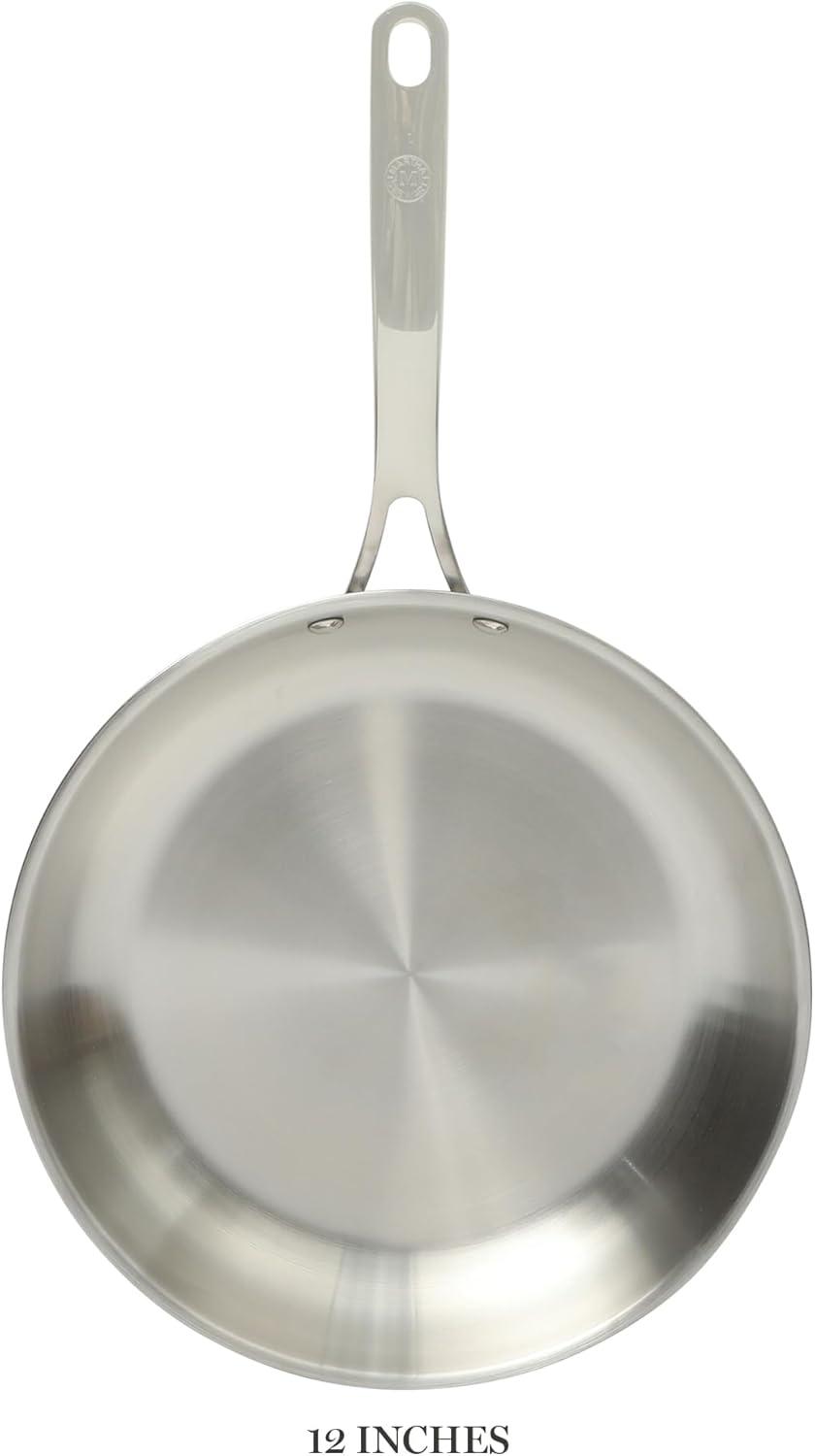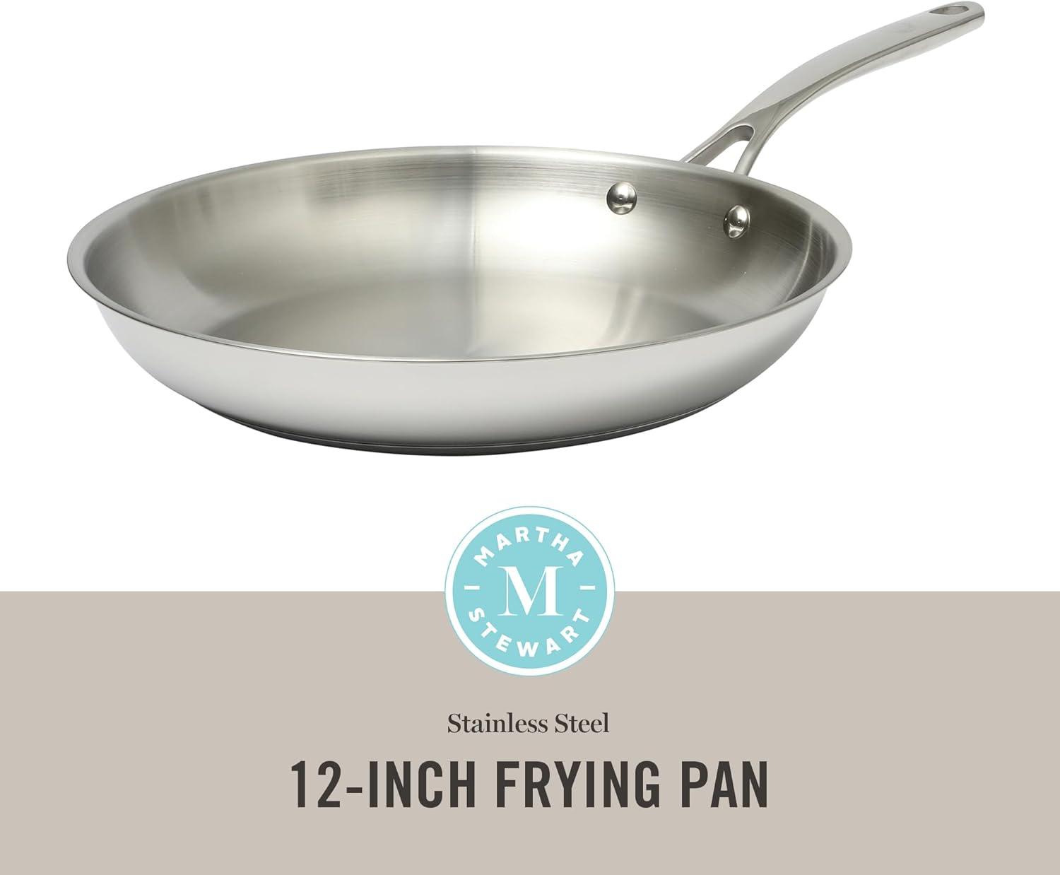 Martha Stewart Castelle Large 12" Stainless Steel Frying Pan Non Toxic Fry Pan Skillet(Stainless Steel)
