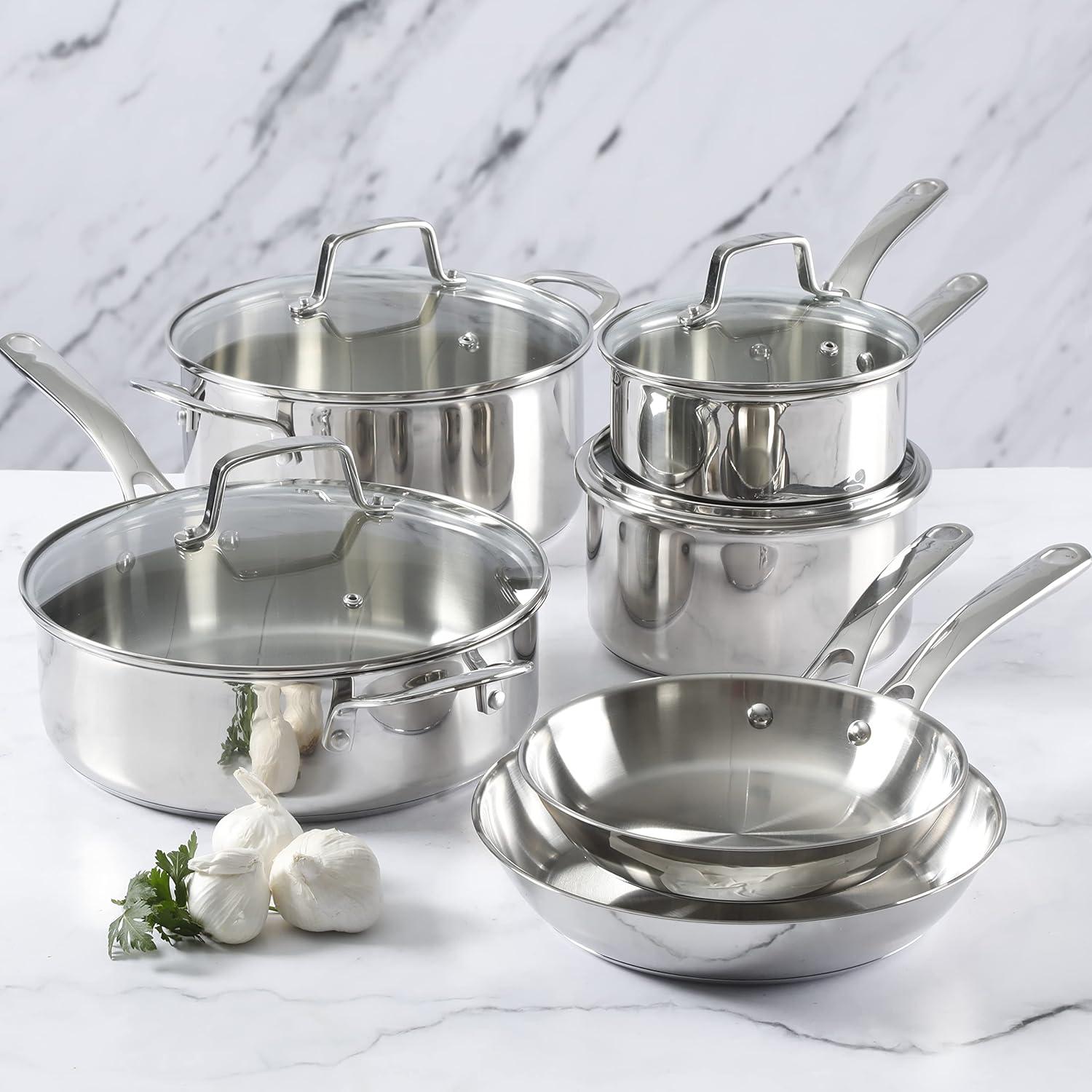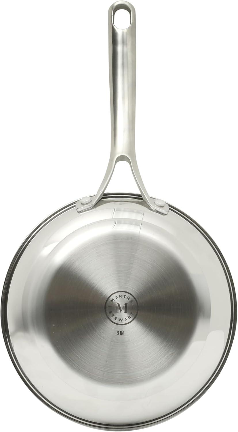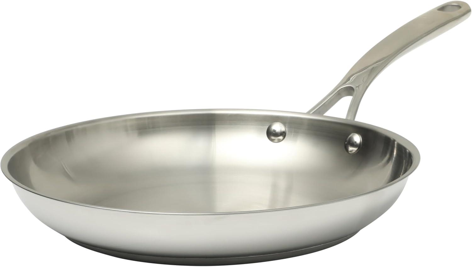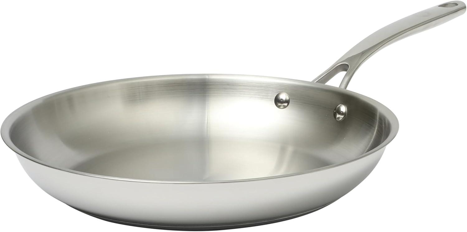 Martha Stewart Castelle Large 12" Stainless Steel Frying Pan Non Toxic Fry Pan Skillet(Stainless Steel)