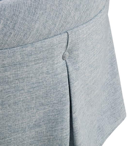 Round Cocktail Ottoman: A button-tufted round ottoman upholstered in light blue fabric, complete with a pleated skirt for a touch of timeless elegance. Perfect for your living room or bedroom, it adds a layer of sophistication to your décor