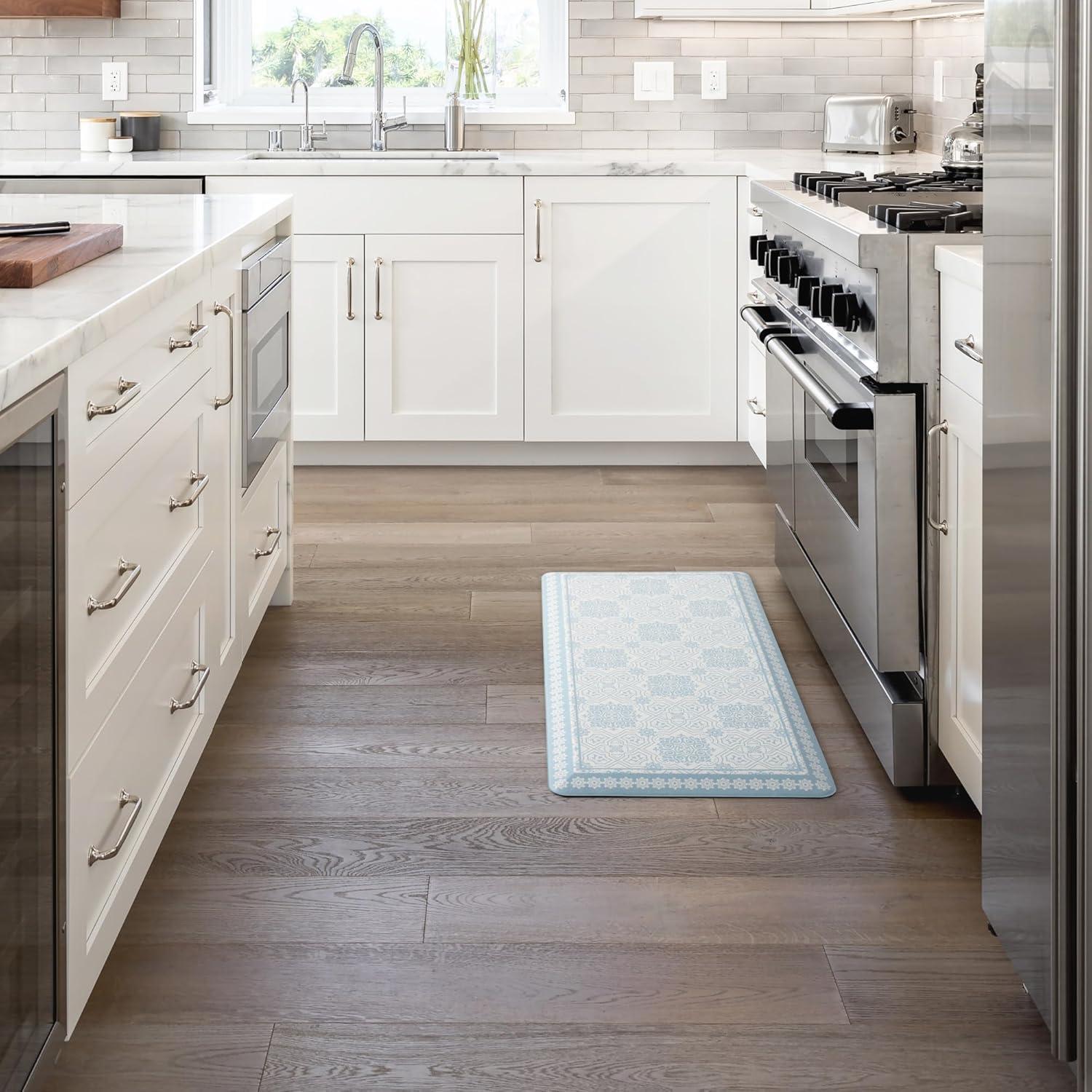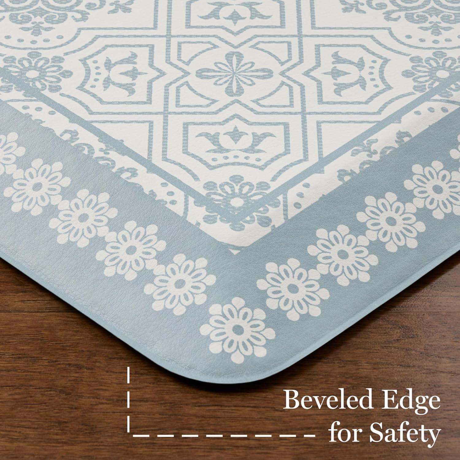 The Martha Stewart Comfort Anti Fatigue Strie Medallion Tile comfort mat is a perfect addition to any home, whether you're looking for a kitchen mat, standing desk mat, or laundry room rug – this rug collection has you covered! This gorgeous strie medallion tile mat provides superior comfort with its memory foam core and non-slip backing, plus it has a wipe clean surface for easy maintenance. Made of recycled materials,It's water, stain, and oil resistant and ideal for busy kitchens. The classic medallion tile pattern in bold colors will bring a touch of style to any room.