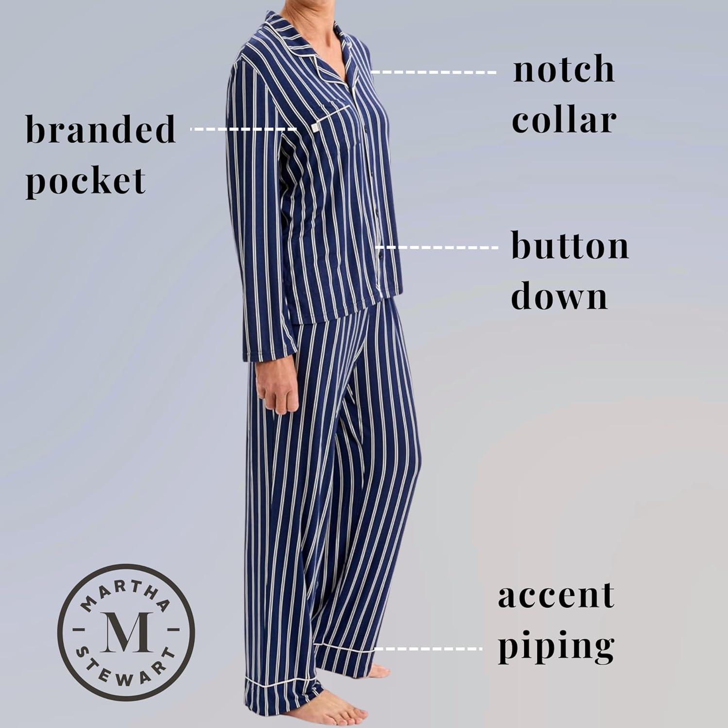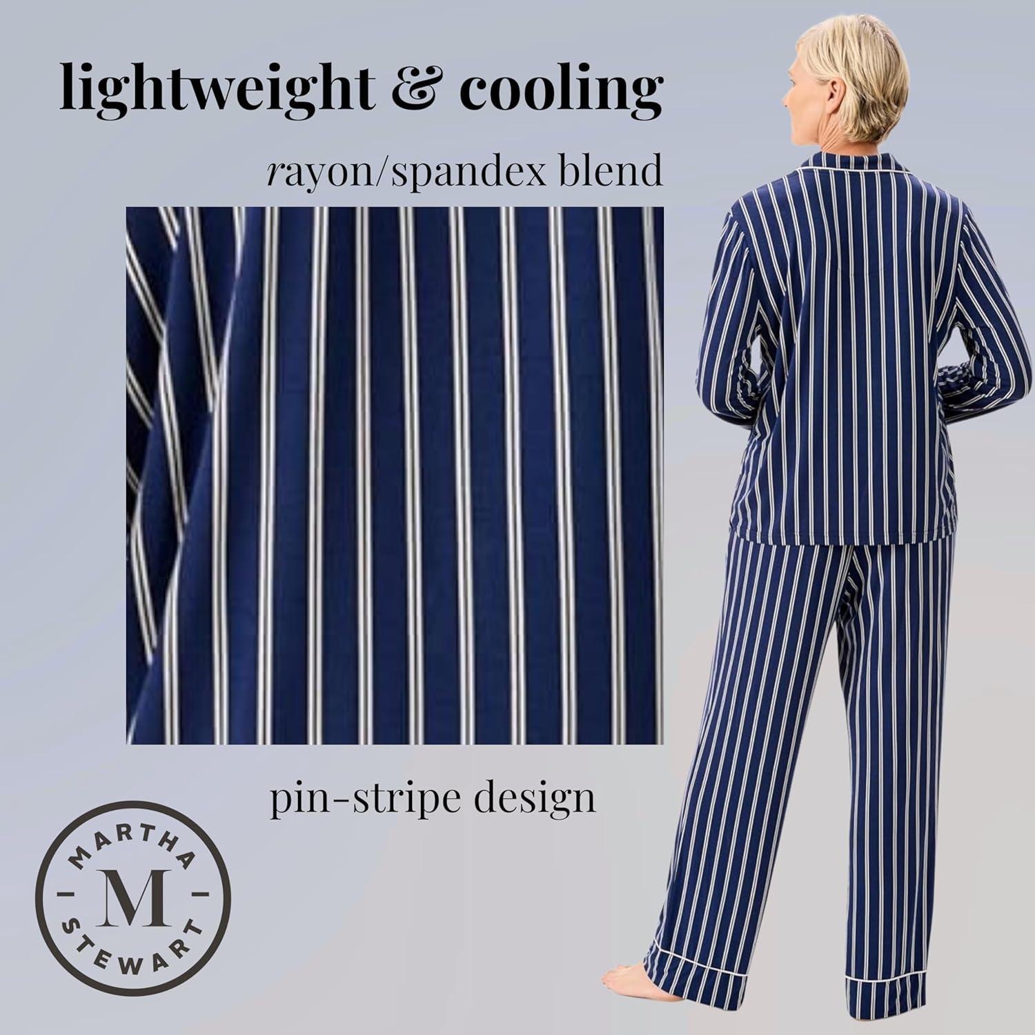 Martha Stewart Cooling Rayon Pajama Set for Women | Long Sleeve, Button-Down Style for Cool, Comfortable Coverage(Medieval Blue)