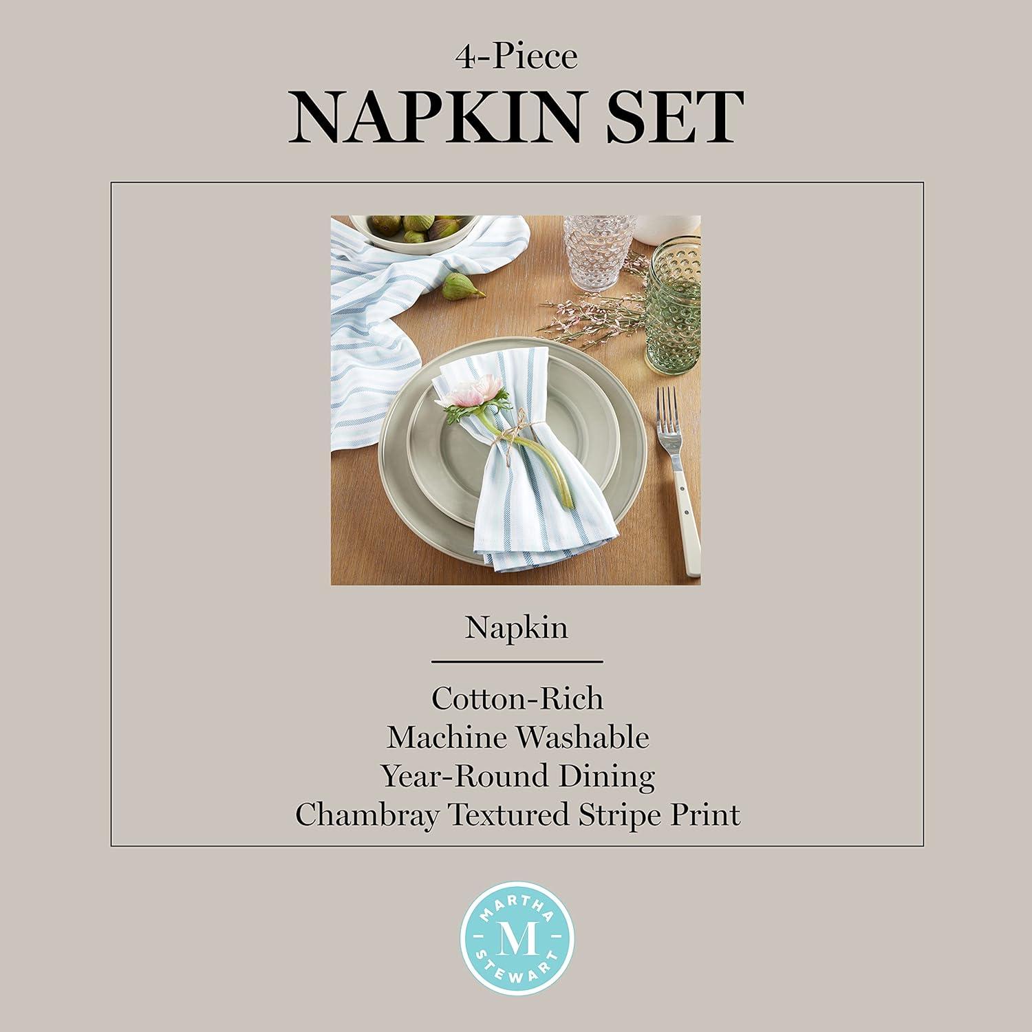 DURABLE & COLORFAST: The Martha Stewart Daisy Stripe Napkin Set is made of cotton-rich, Chambray-textured fabric that's durable, colorfast, and designed for long-last use.