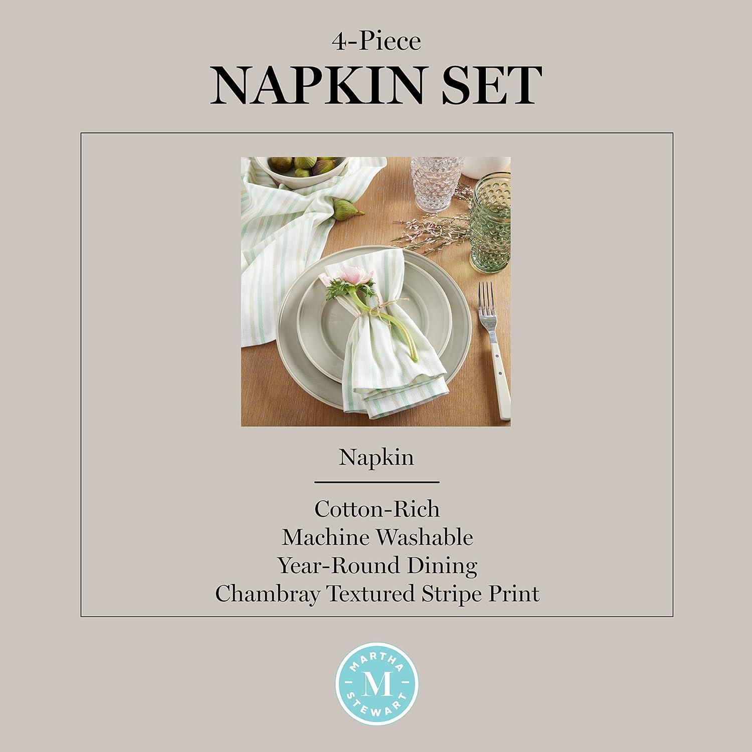 DURABLE & COLORFAST: The Martha Stewart Daisy Stripe Napkin Set is made of cotton-rich, Chambray-textured fabric that's durable, colorfast, and designed for long-last use.