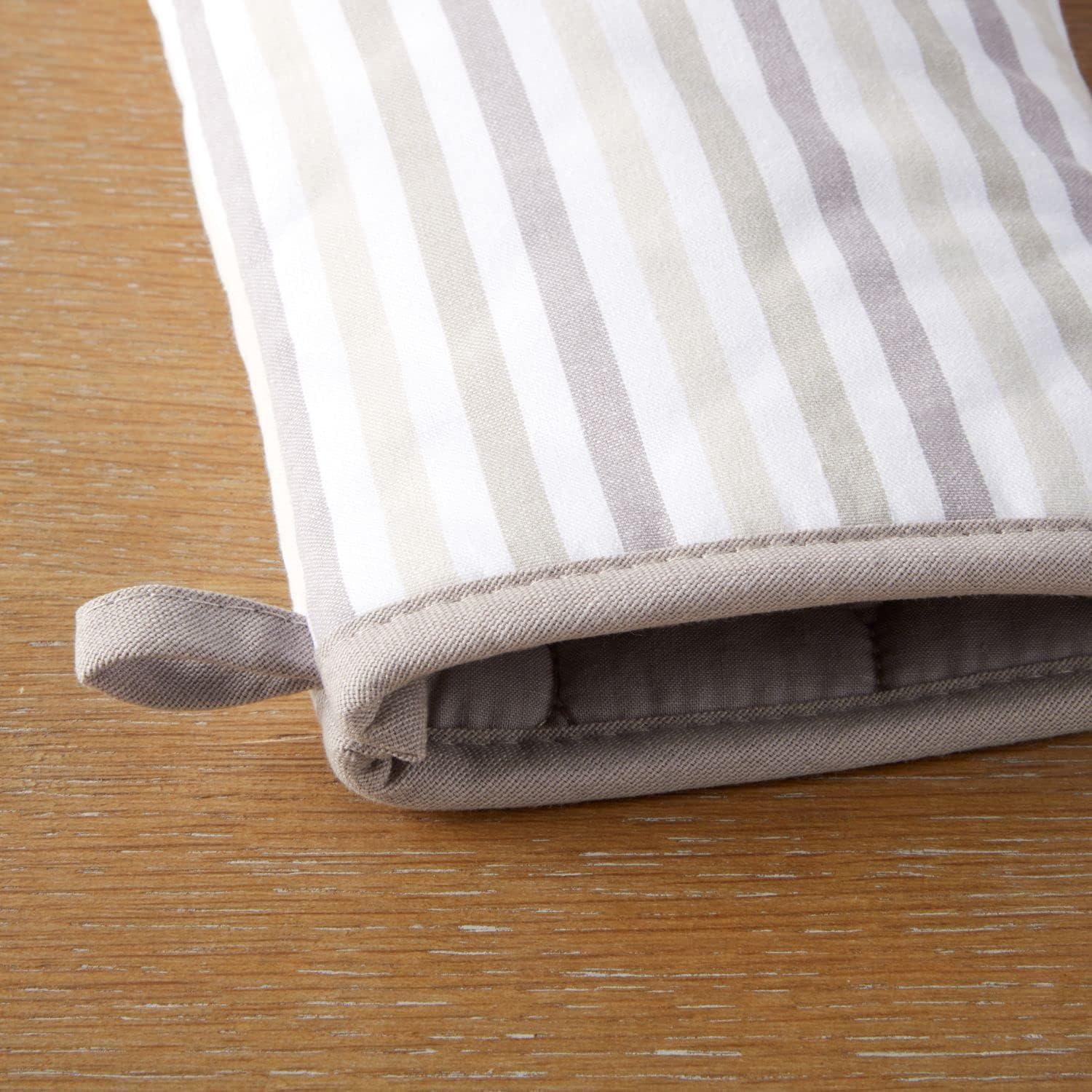 Martha Stewart Daisy Stripe Oven Mitt Set 2-Pack, Beige/Brown, 7"x13"(Linen)