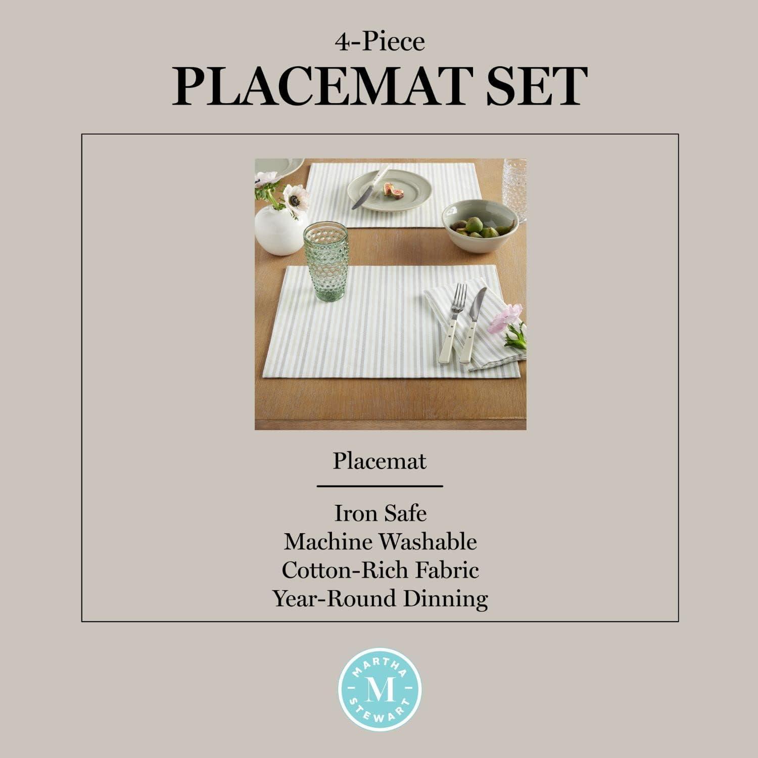 Add a classic stripe print to your tablescape with the Martha Stewart Daisy Stripe Reversible Placemat 4-Pack. Woven with a cotton-rich, Chambray-textured fabric that is durable for long-lasting use and will protect your tabletop and tablecloth. Perfect to use all year round for everyday dining, festive holiday gatherings and formal dinners. For easy cleaning, this placemat is machine washable for easy care.