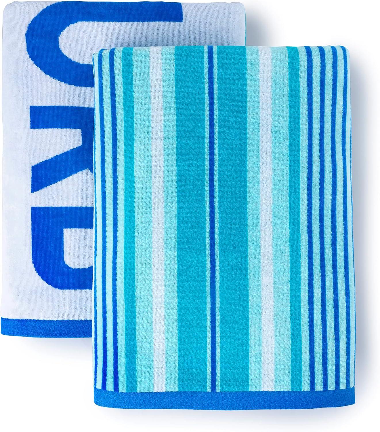 Martha Stewart Egyptian Cotton Bath Towels Set - 6 Piece, 2 Bath Towels - 2 Hand Towels - 2 Washcloths, Absorbent Bathroom Towels, Bathroom Essentials, Butter(Blue & White)