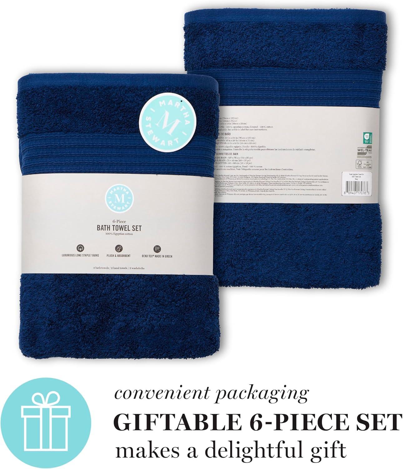 Martha Stewart Egyptian Cotton Bath Towels Set - 6 Piece, 2 Bath Towels - 2 Hand Towels - 2 Washcloths, Absorbent Bathroom Towels, Bathroom Essentials, Butter(Navy)