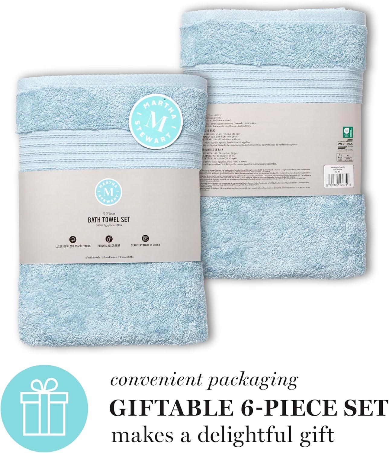 Martha Stewart Egyptian Cotton Bath Towels Set - 6 Piece, 2 Bath Towels - 2 Hand Towels - 2 Washcloths, Absorbent Bathroom Towels, Bathroom Essentials, Butter(Spa Blue)