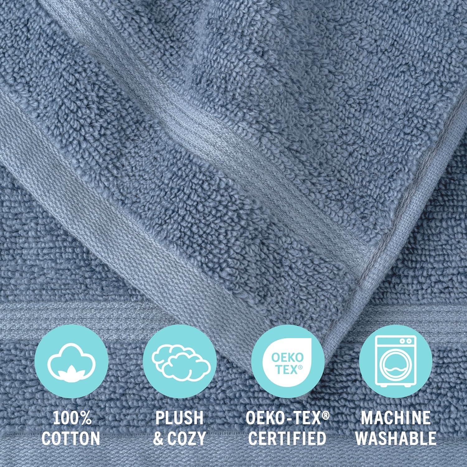 imageMartha Stewart Egyptian Cotton Bath Towels Set  6 Piece 2 Bath Towels  2 Hand Towels  2 Washcloths Absorbent Bathroom Towels Bathroom Essentials ButterTextured Blue