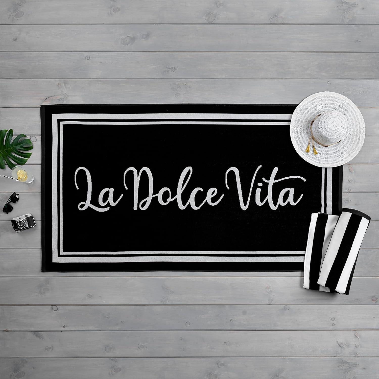 Martha Stewart Egyptian Cotton Bath Towels Set - 6 Piece, 2 Bath Towels - 2 Hand Towels - 2 Washcloths, Absorbent Bathroom Towels, Bathroom Essentials, Butter(X Black & White)