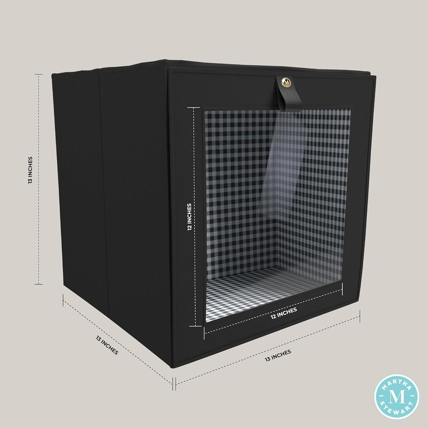 imageMartha Stewart Essential Collapsible Stackable Decorative Home Storage Cube Organization Two Piece Set Includes One Storage Cube With Dividers and One Craft Cube Bedford FloralBlack