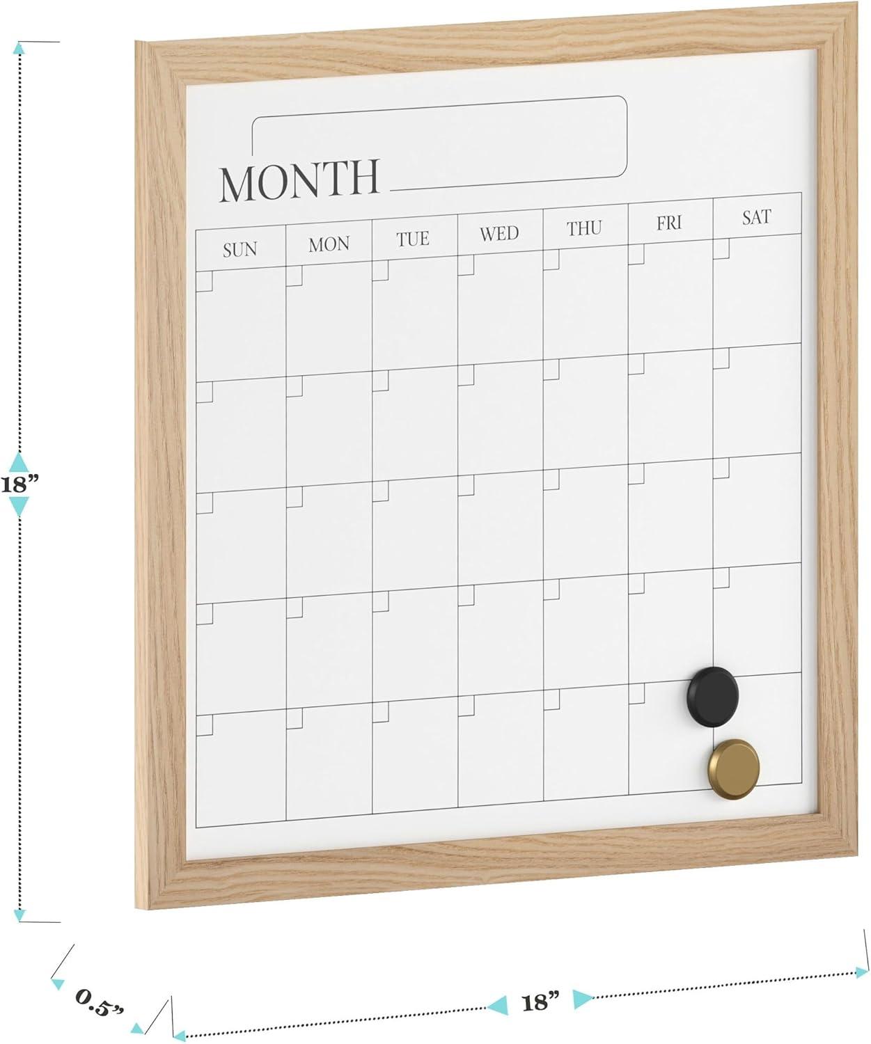 Martha Stewart Everette Magnetic Monthly Calendar Dry Erase Board with Included Dry Erase Marker and 2 Magnets, 18″ x 18″, Light Natural Woodgrain Frame(Light Natural Woodgrain)