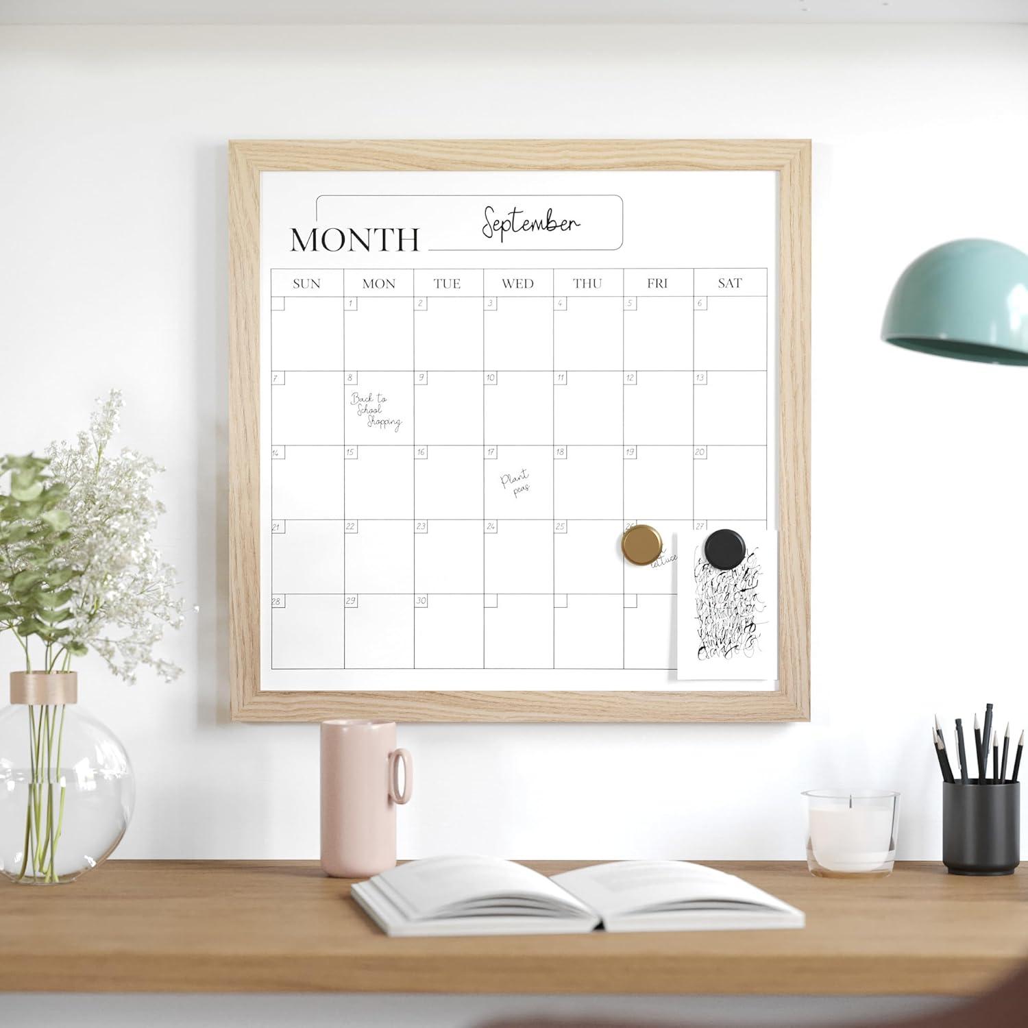 Martha Stewart Everette Magnetic Monthly Calendar Dry Erase Board with Included Dry Erase Marker and 2 Magnets, 18″ x 18″, Light Natural Woodgrain Frame(Light Natural Woodgrain)