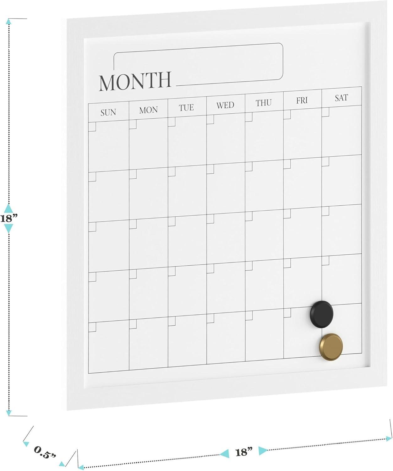 Martha Stewart Everette Magnetic Monthly Calendar Dry Erase Board with Included Dry Erase Marker and 2 Magnets, 18″ x 18″, Light Natural Woodgrain Frame(White Woodgrain)