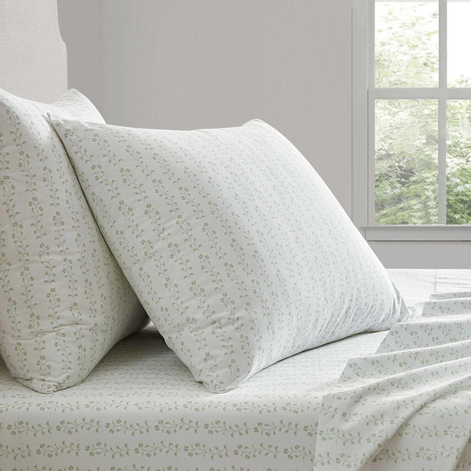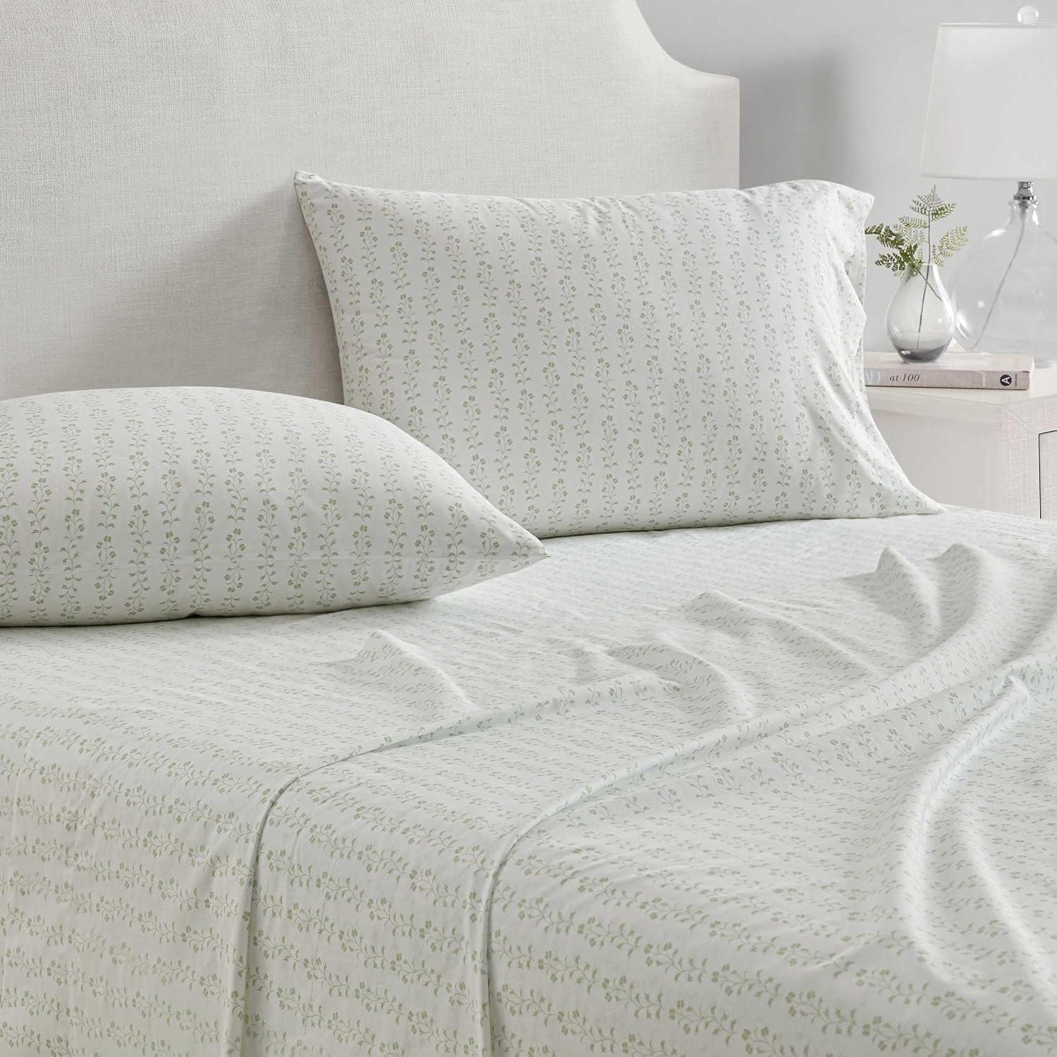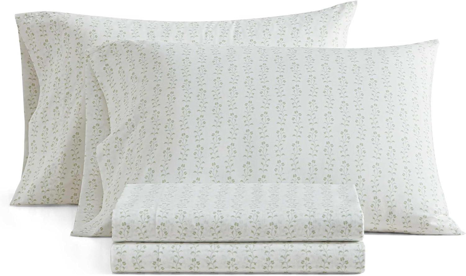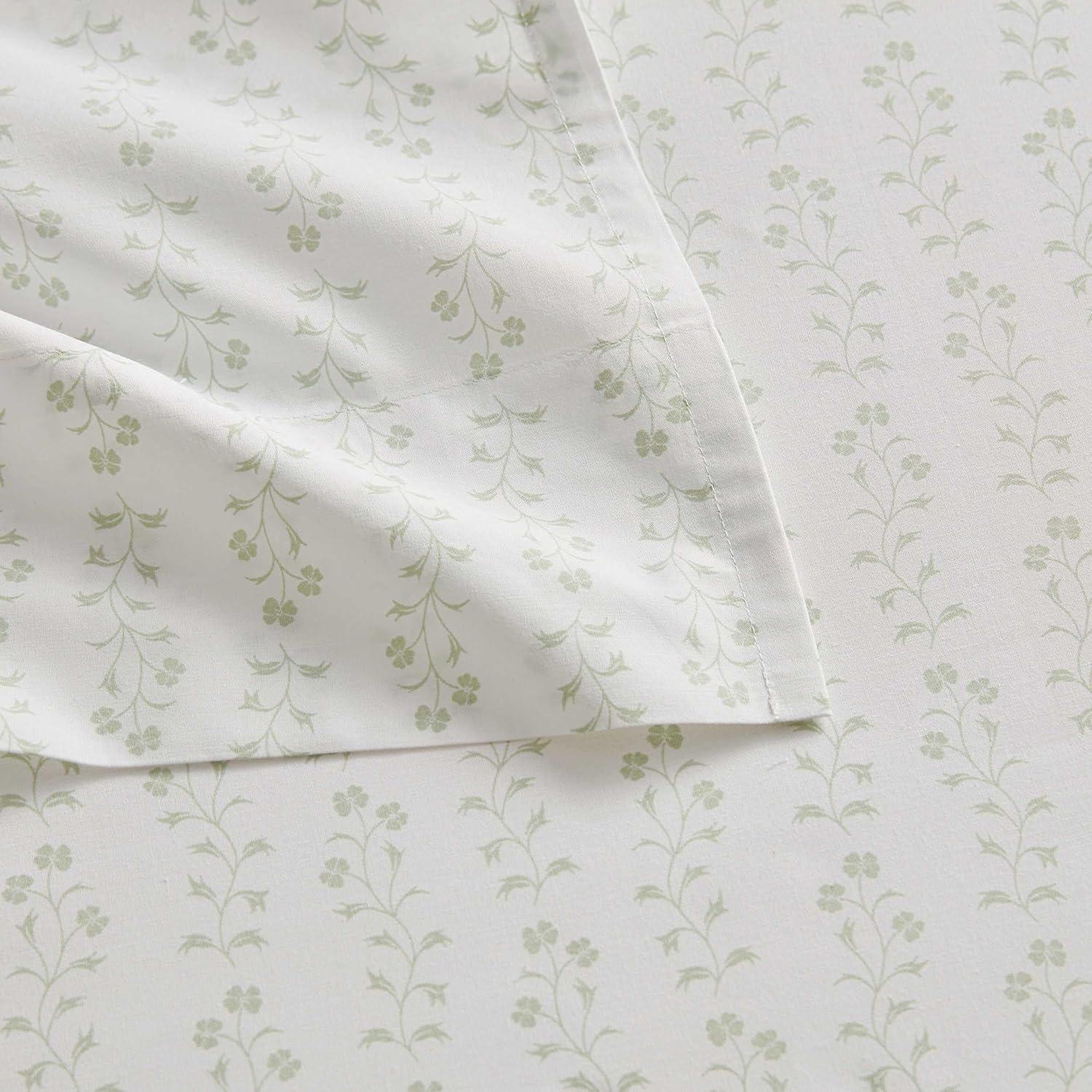 Martha Stewart - Full Size Sheets Set, Crisp & Tailored Cooling Sheets w/a Naturally Smooth Cotton Percale Lightweight Feel - Bed Sheets with Matching Pillowcases & Fitted Sheet (Floral Blue)(Ditsy Vine Green)