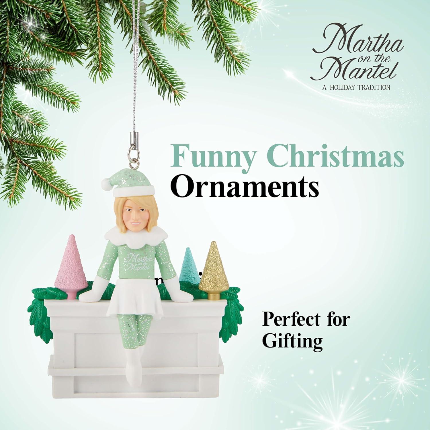 Add Holiday Humor to Your Tree: Showcase the iconic Martha on the Mantel with these funny Christmas ornaments that bring a playful twist to your décor. Each Christmas ornament features vibrant colors and fine detailing for a standout festive display.