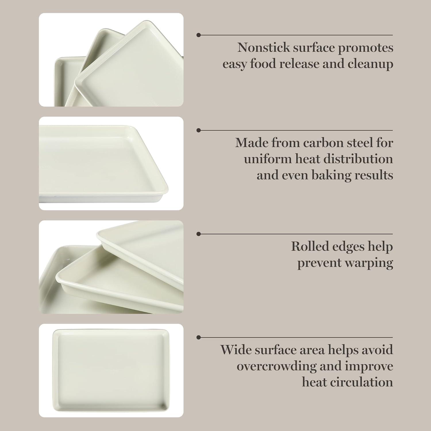 Widely known as both an art and a science, baking blends technical precision and artistic skills to dish out sweet and savory creations with decadent flavors and beautiful presentations. Martha Stewart's Gallen Bakeware Collection gears up home bakers for frequent family visits, five-star reviews and ultimately, multiple rounds of culinary success. As a selection of bakeware essentials, this collection features the core classics to bake, brown, roast, and serve go-to suppers and signature desserts. Each piece offers a nonstick surface that is both easy to grease and convenient to clean. It requires less oil or butter to release baked or roasted goods smoothly. Made from durable carbon steel, it responds to heat quickly to conduct and distribute it for even results. The rolled edges protect the bakeware from warping to maintain its original shape after multiple baking sessions and frequent exposure to high heat. Hand wash only.