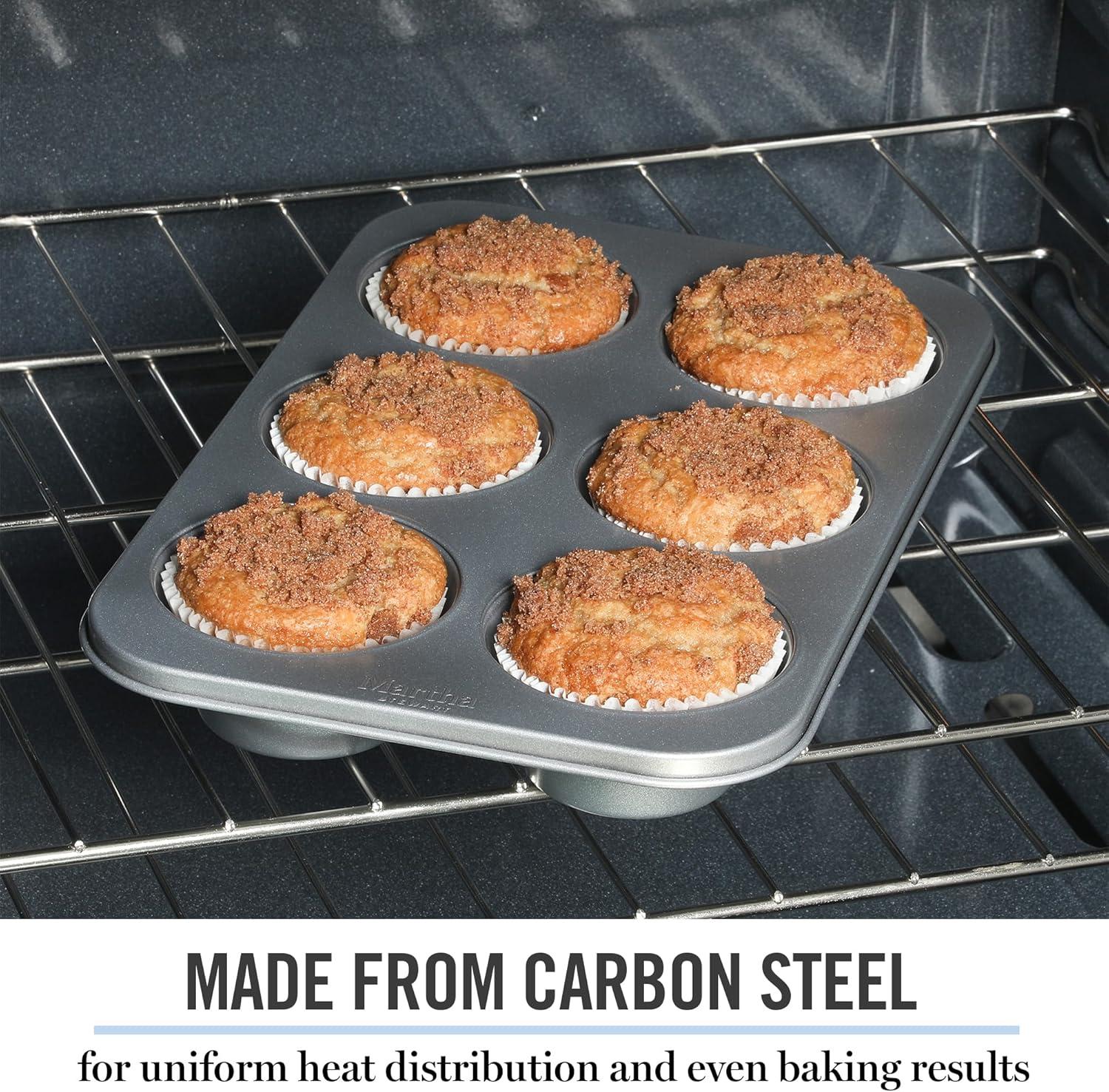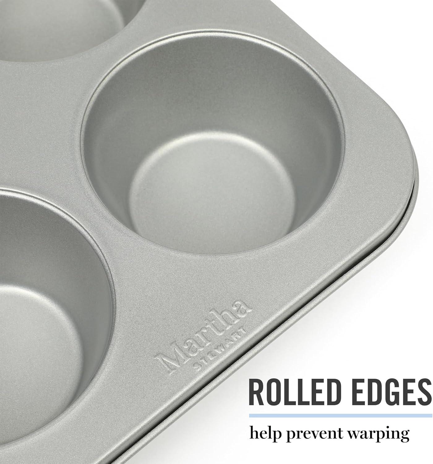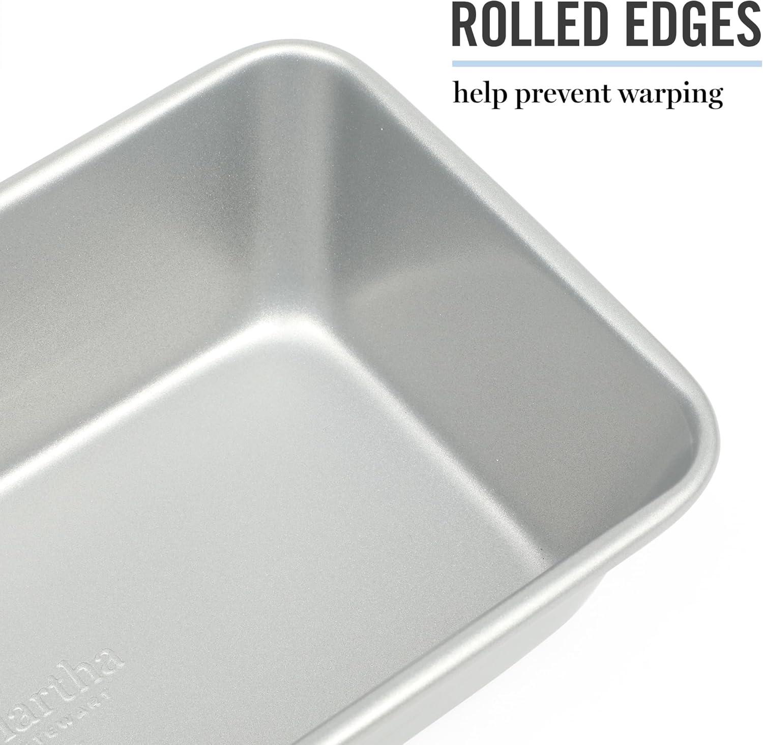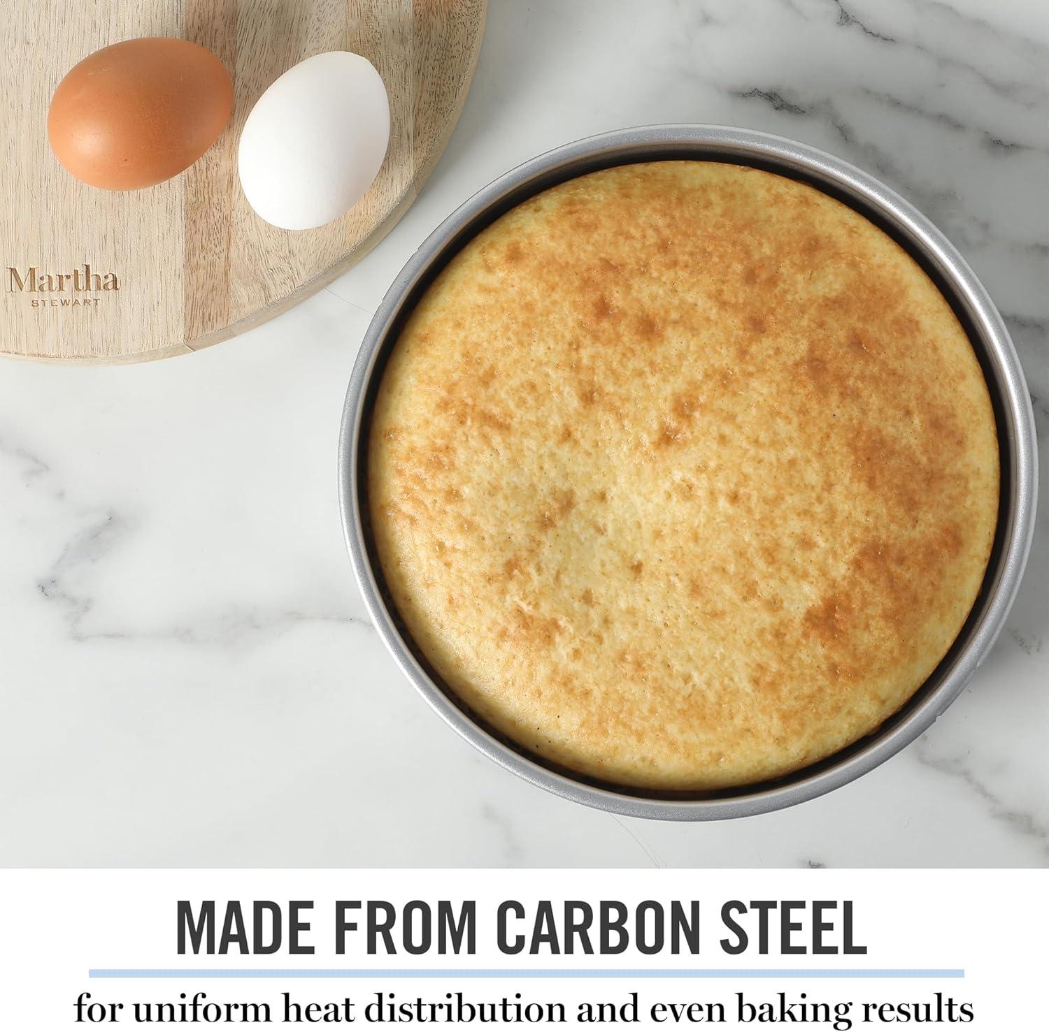Widely known as both an art and a science, baking blends technical precision and artistic skills to dish out sweet and savory creations with decadent flavors and beautiful presentations. Martha Stewart's Gallen Bakeware Collection gears up home bakers for frequent family visits, five-star reviews and ultimately, multiple rounds of culinary success. As a selection of bakeware essentials, this collection features the core classics to bake, brown, roast, and serve go-to suppers and signature desserts. Each piece offers a nonstick surface that is both easy to grease and convenient to clean. It requires less oil or butter to release baked or roasted goods smoothly. Made from durable carbon steel, it responds to heat quickly to conduct and distribute it for even results. The rolled edges protect the bakeware from warping to maintain its original shape after multiple baking sessions and frequent exposure to high heat. Hand wash only.