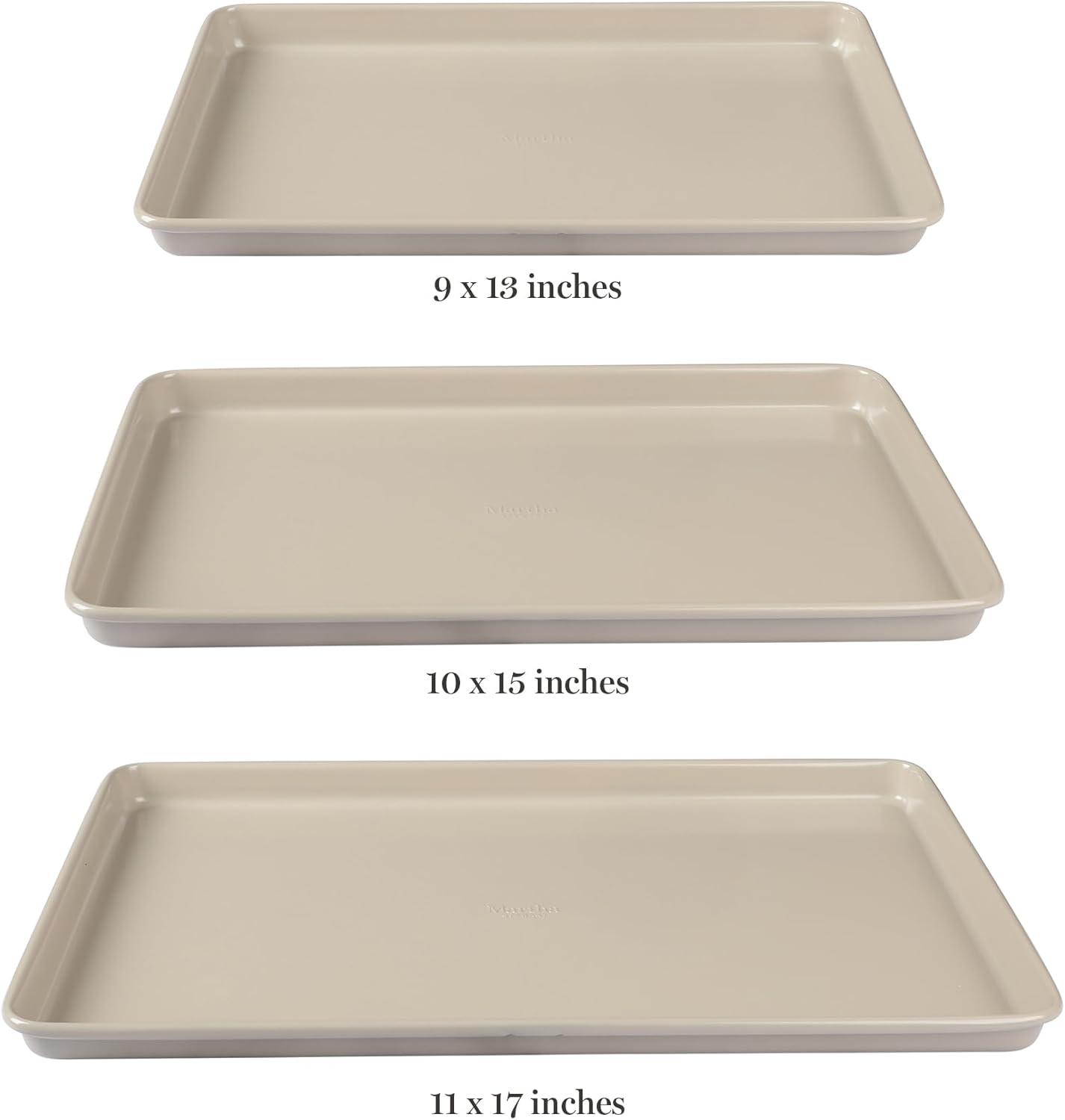 imageMartha Stewart Gallen 12 Cup Nonstick Carbon Steel MuffinCupcake Pan  Cool GreyTaupe Set
