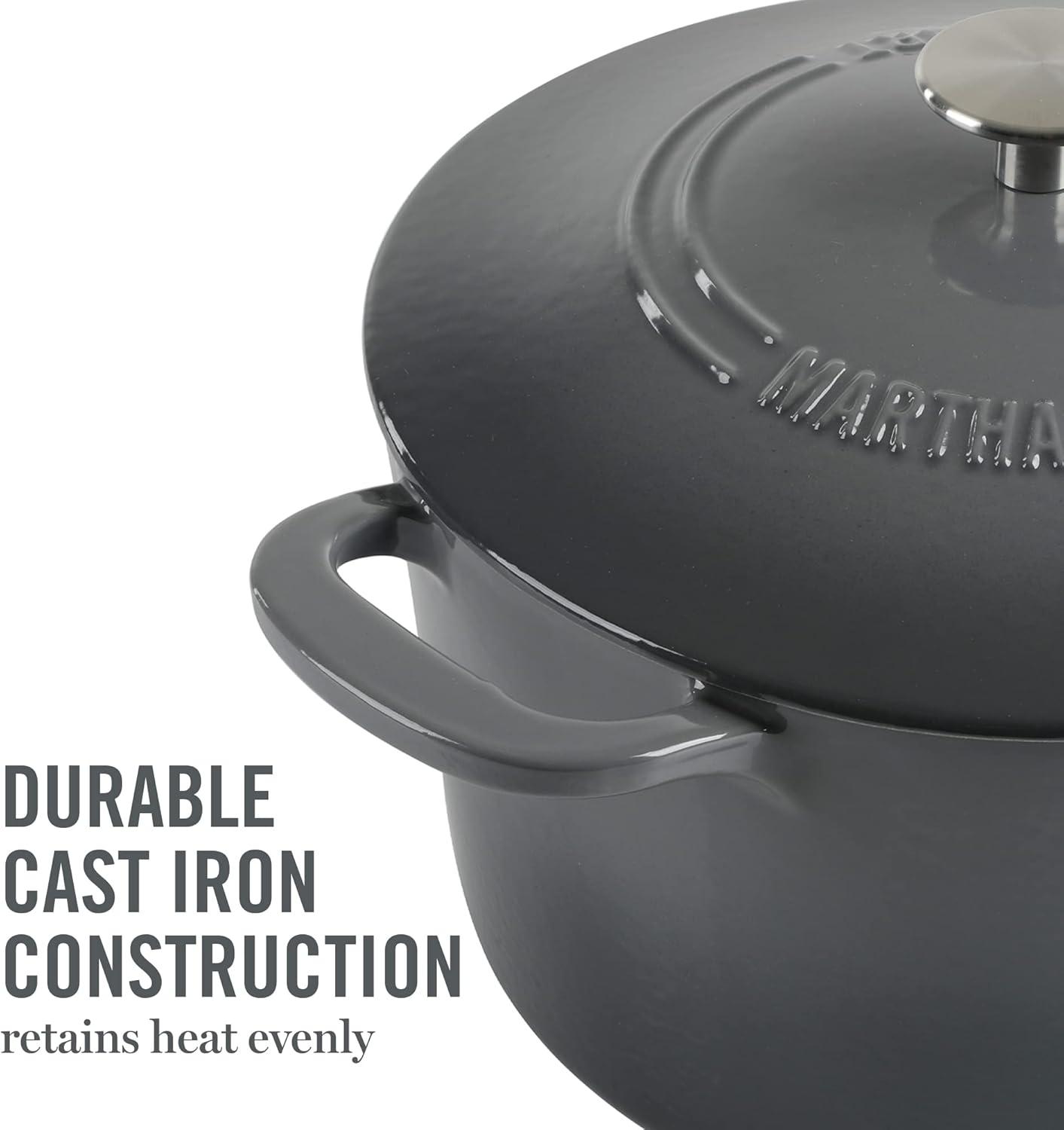 MARTHA STEWART Gatwick 7 QT Enamel Cast Iron Dutch Oven Pot with Lid, Martha Blue(Classic Gray)