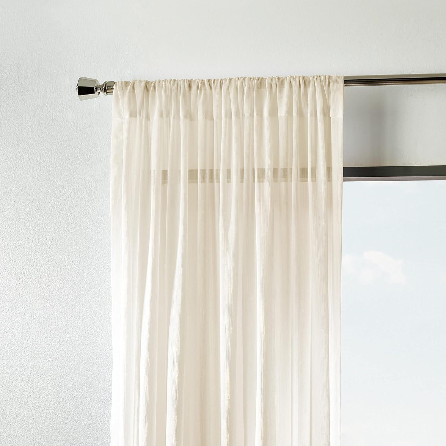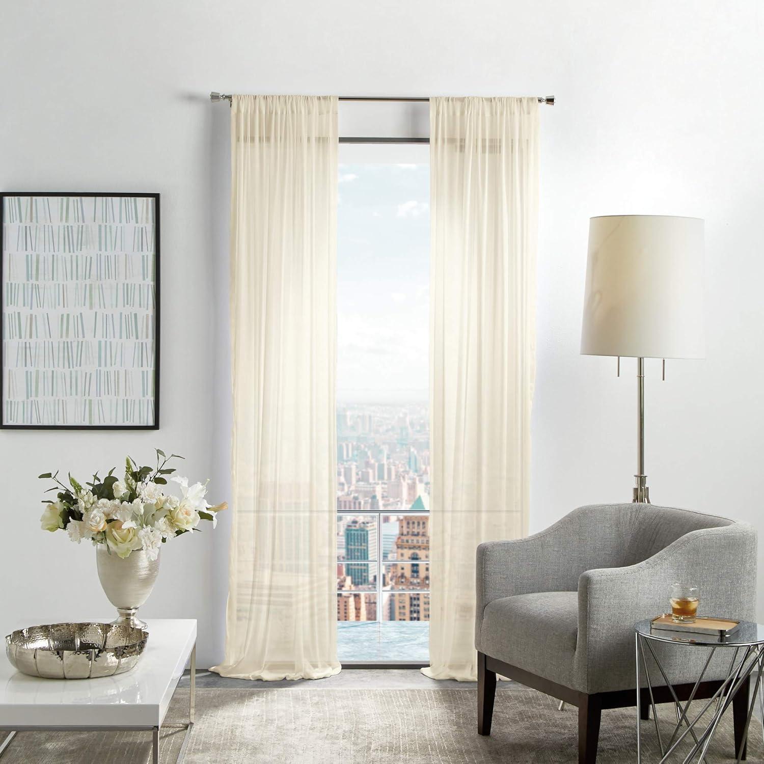 Martha Stewart Glacier Sheer Rod Pocket Window Curtain Panel Pair, 95", White(Ivory)