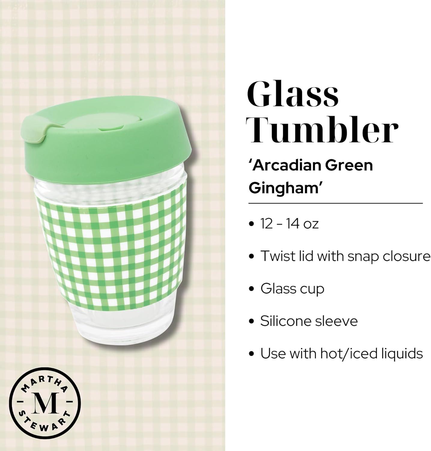 Comfortable Grip: Features a green gingham silicone sleeve for added comfort and style anytime you use this travel coffee tumbler.