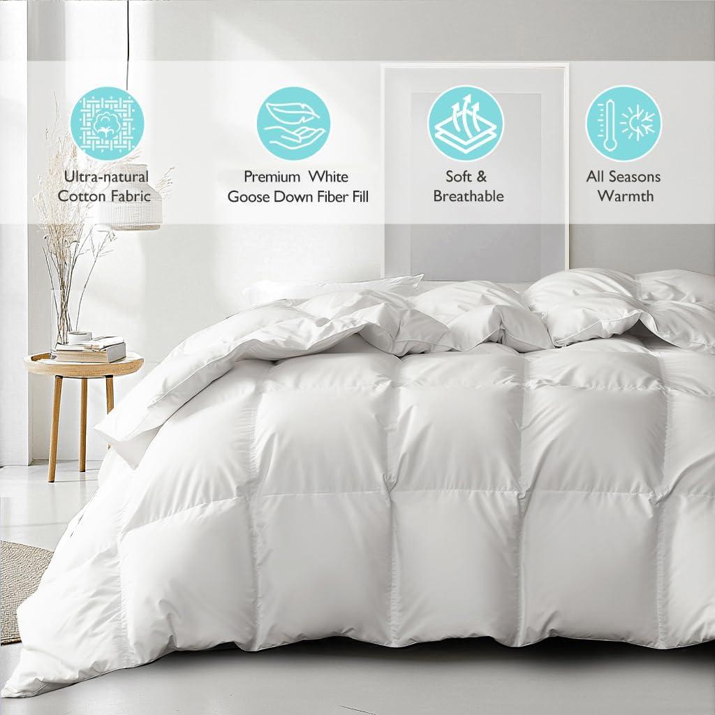 Fluffy and Evenly Distributed Design – Featuring small, sewn-through boxes from end to end, this comforter retains its plush look while keeping the fill evenly distributed. This construction prevents the down from shifting or clumping, ensuring consistent warmth and comfort all night long