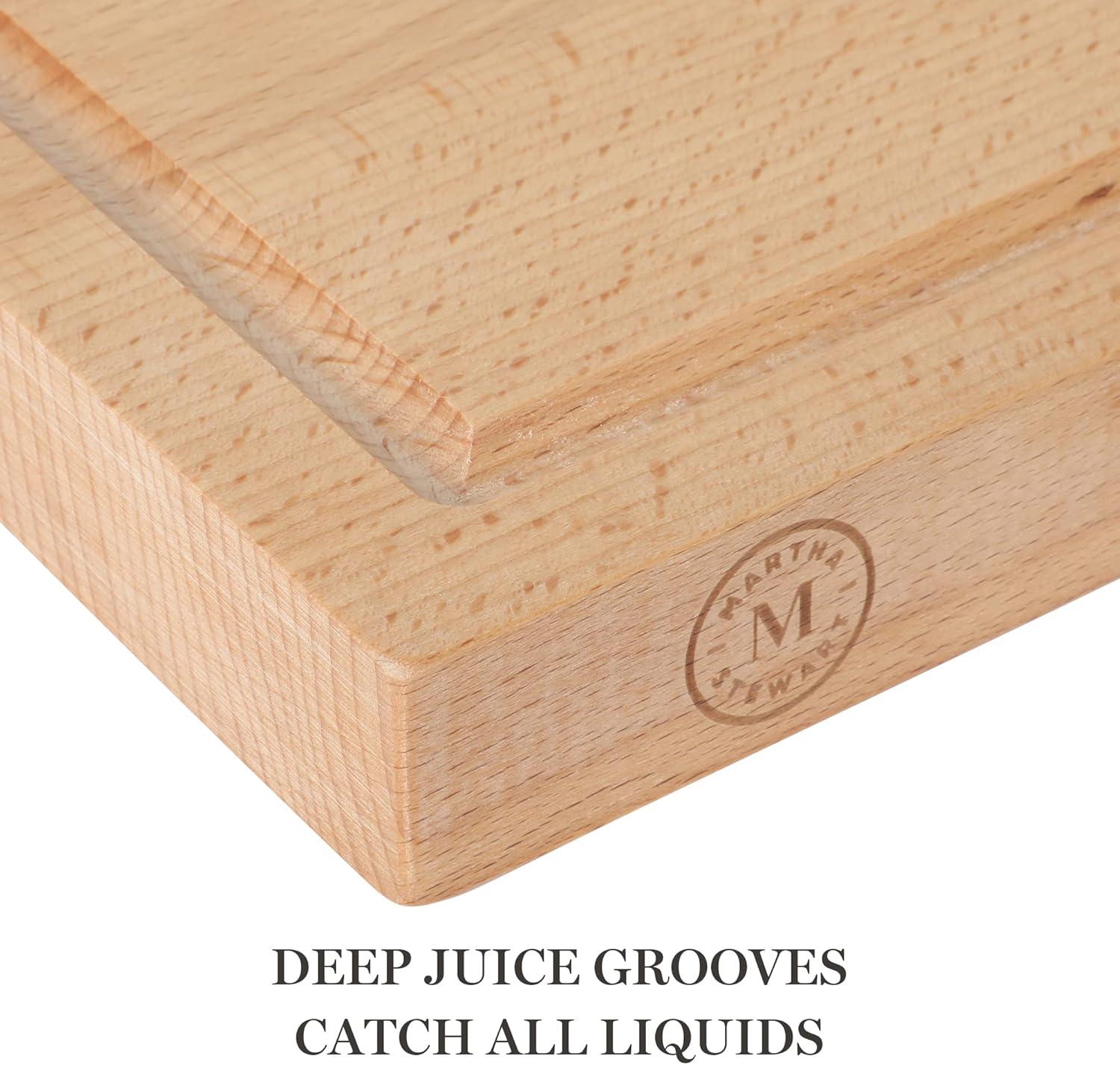 After roasting the turkey, chicken, goose, or any of your preferred protein in the oven, let it rest and get to work. Having the right tools on hand makes the job of cutting up the bird easier. The Goswell 3-piece Carving Set from Martha Stewart equips home cooks with the essentials to masterfully carve and serve like a pro. The 8-inch carving knife features a high-carbon, stainless steel blade to cut through soft joints and bones down to the juiciest parts of the meat. To securely hold the meat in place, the 6-inch stainless steel carving fork has sharp and sturdy tines for easy and confident cutting. Friendly tip: Cut in an angle so you are cutting on a bias. Nestle them onto a beautiful platter or serve straight from the beech wood board to the table, and let your guests have a chance to carve their own favorite pieces. The beech wood board from this set features deep juice wells to catch all the drippings – the key ingredient to make everybody's favorite gravy. It also doubles as a grazing board to serve up prosciutto, cheeses, dried fruits, and more to elevate seasonal or year-round entertaining. All pieces are hand wash only. To maintain the beech wood board's natural grain and finish, apply mineral oil after every wash or when the wood feels rough or dry.