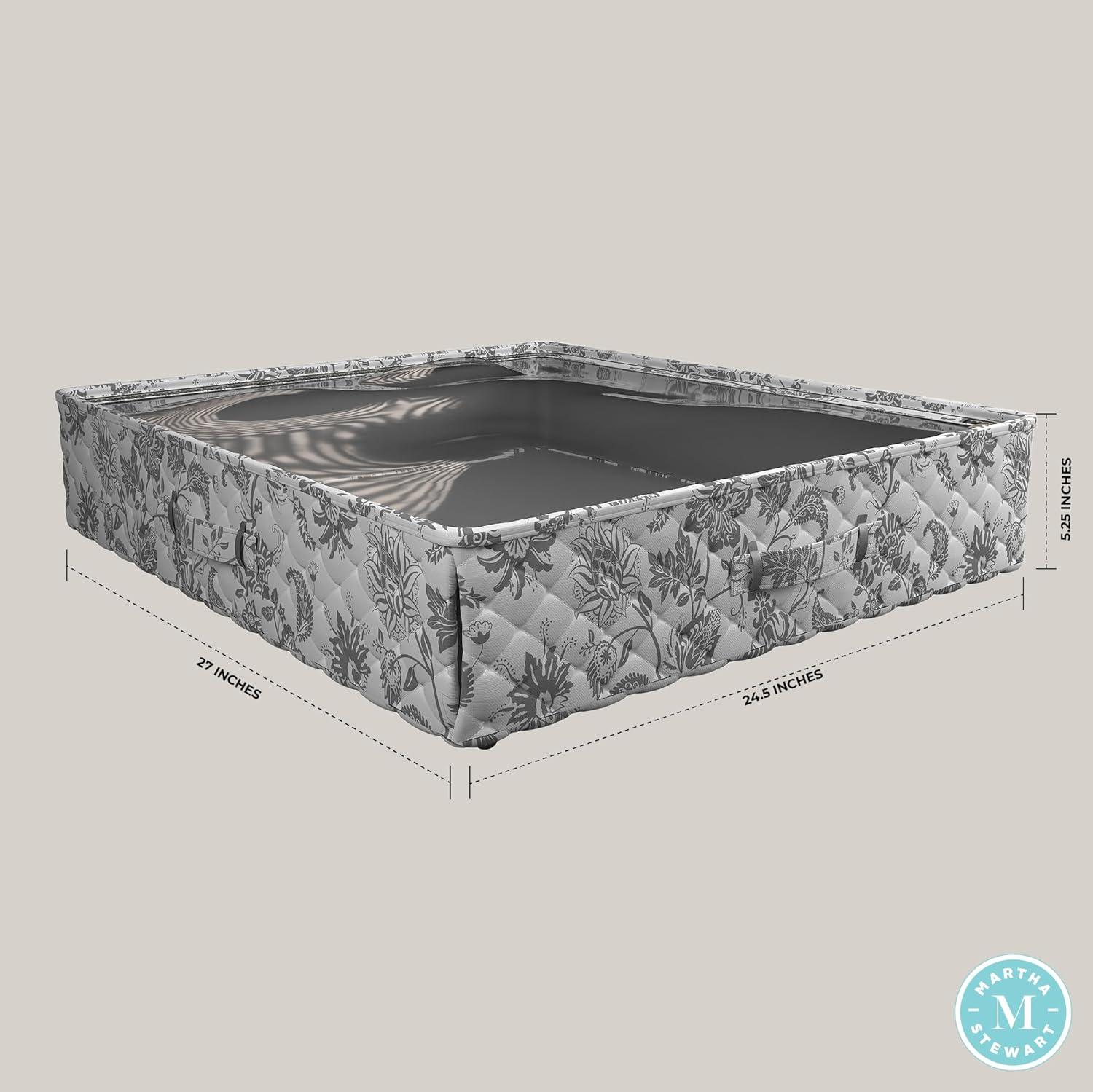 SET CONTAINS 2 PIECES: Two under the bed storage organizers. Each under the bed storage organizer measures 27”W x 24.5”D x 5.25”H. The maximum loading capacity is 40 pounds. Fits perfectly under Martha Stewart bed frames as well as most standard bed frames.
