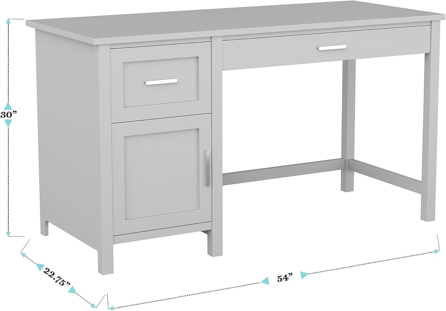 Martha Stewart Hutton Shaker Style Home Office Desk with Storage in White with Polished Brass Hardware(Gray/Brushed Nickel)