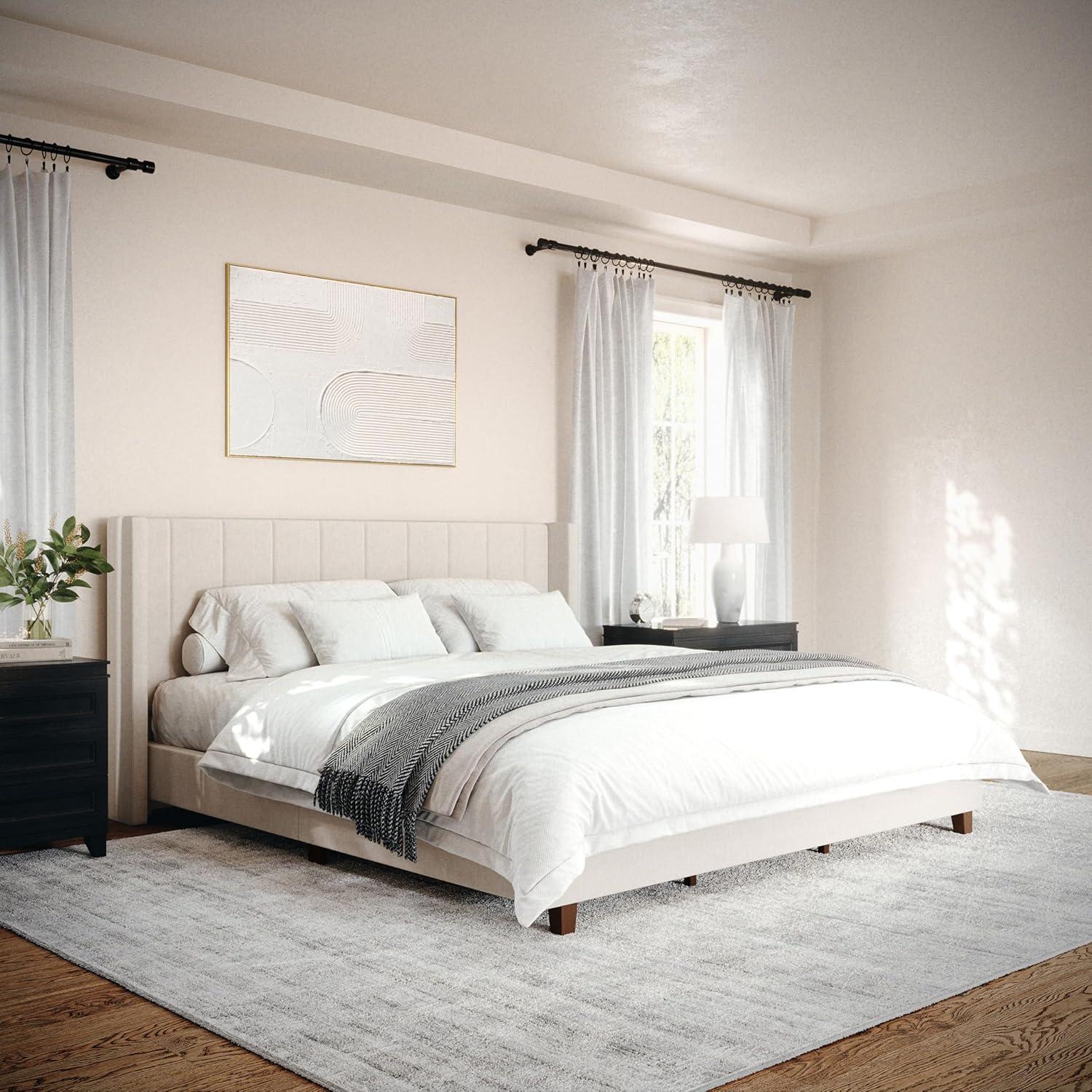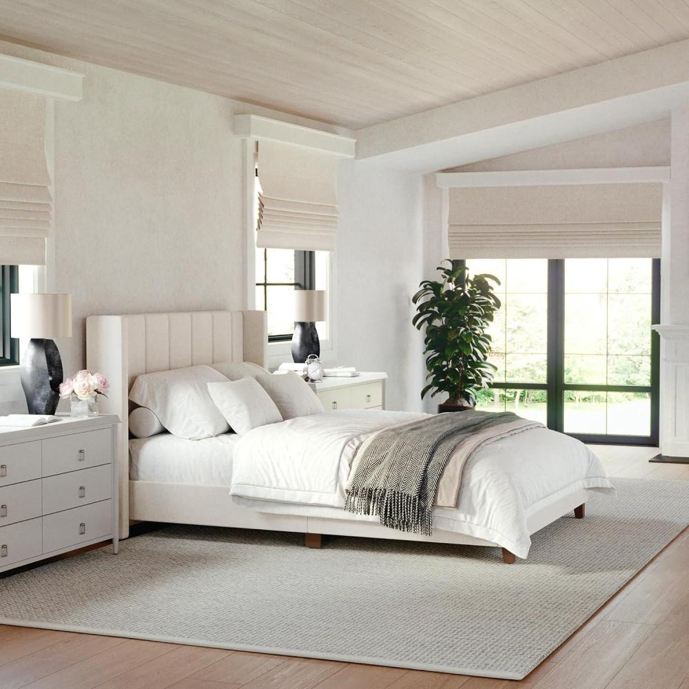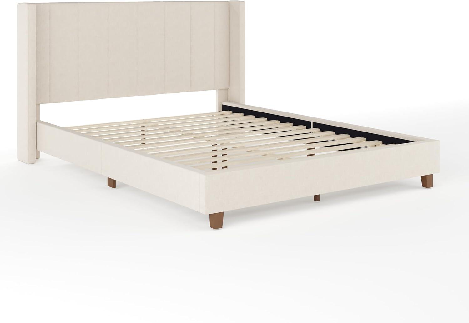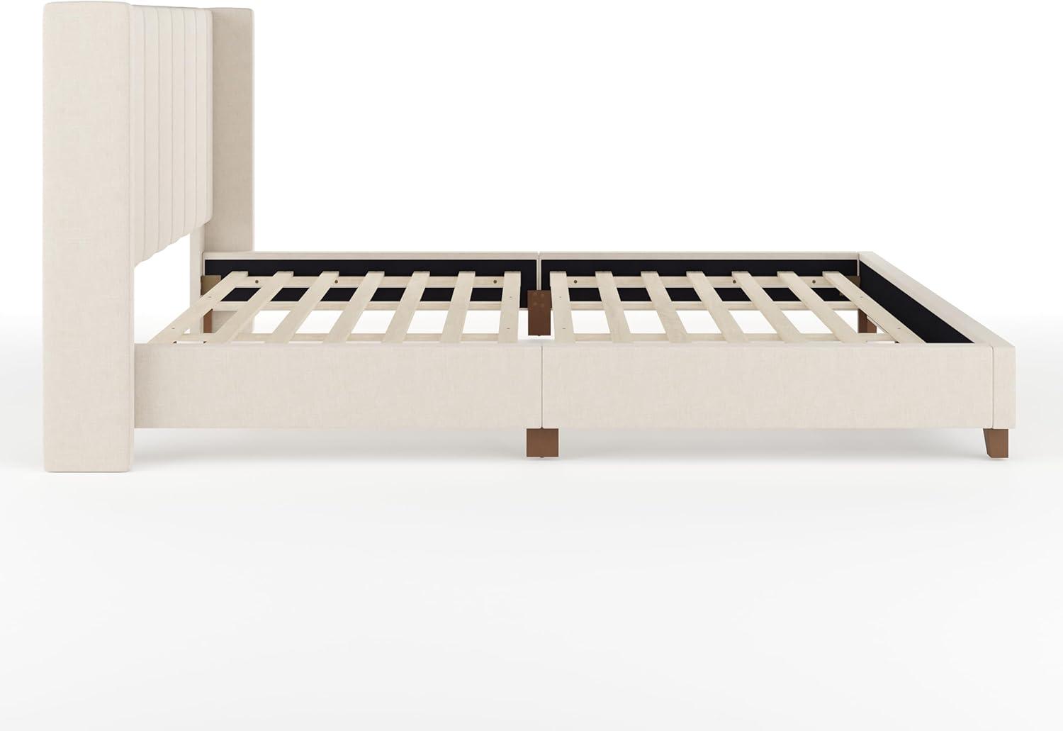 Transform the look of your bedroom with the Martha Stewart Kay Low Profile Platform Bed. Sitting lower to the ground than other bed frames, this bed takes up less vertical real estate to give the illusion of space in rooms with low ceilings or small footprints. Channel stitched faux linen upholstery adorns the headboard, footboard, and cushioned siderails lending a modern, sophisticated look. Amply sized yet beautifully proportioned, the solid wood frame coupled with a wood slat foundation and blocked wooden legs holds up to 800 lbs. of static weight. Illustrated instructions guide you through the assembly process in under one hour so you can quickly turn any sleep space into your personal oasis. Optimize your sleep experience and pair this bed with one of our premium Martha Stewart SleepComplete mattresses for an exceptional look and luxurious comfort.