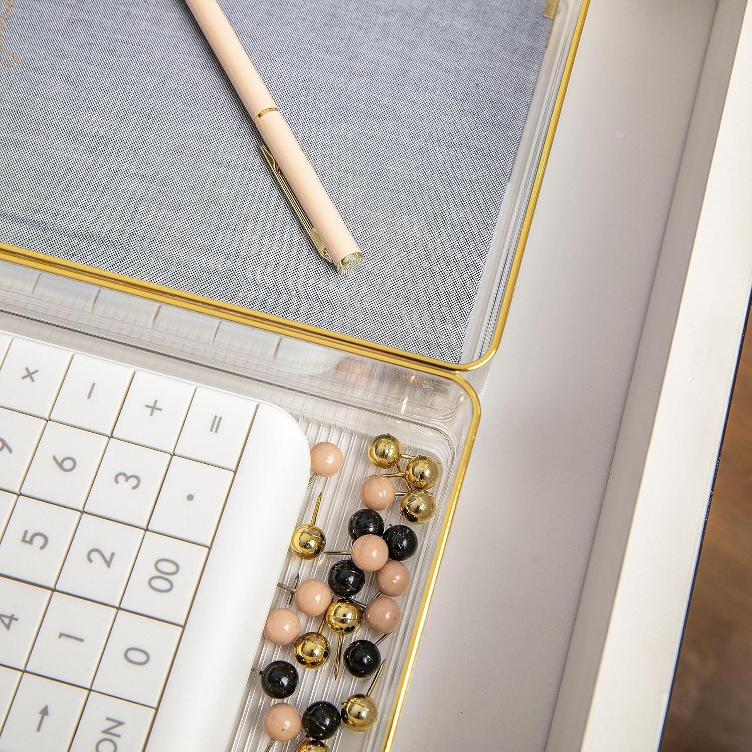 Storage and organization can be beautiful as well as functional with this set of six 6″ x 3″ Martha Stewart Kerry Desk Drawer Organizers