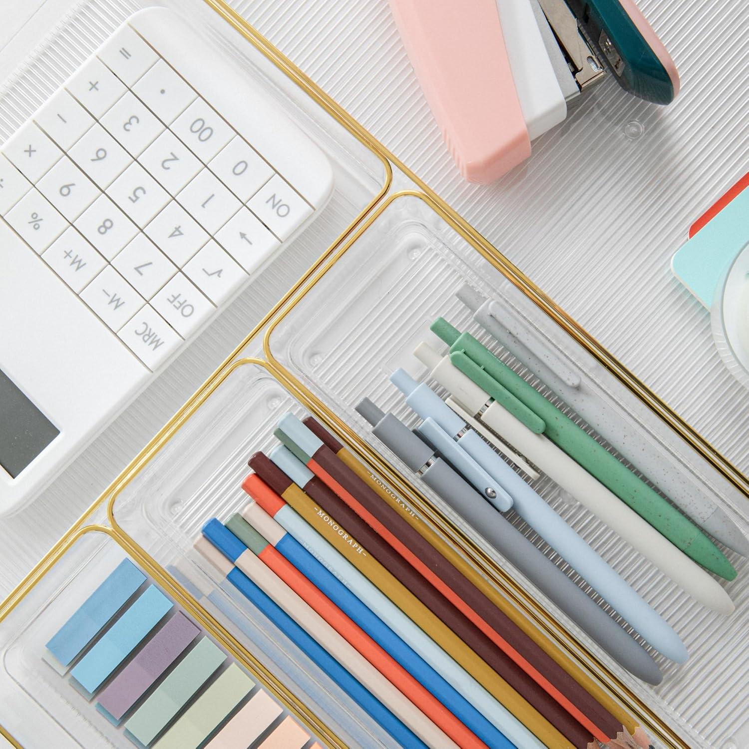 Storage and organization can be beautiful as well as functional with this 8 piece variety pack of Martha Stewart Kerry Desk Drawer Organizers