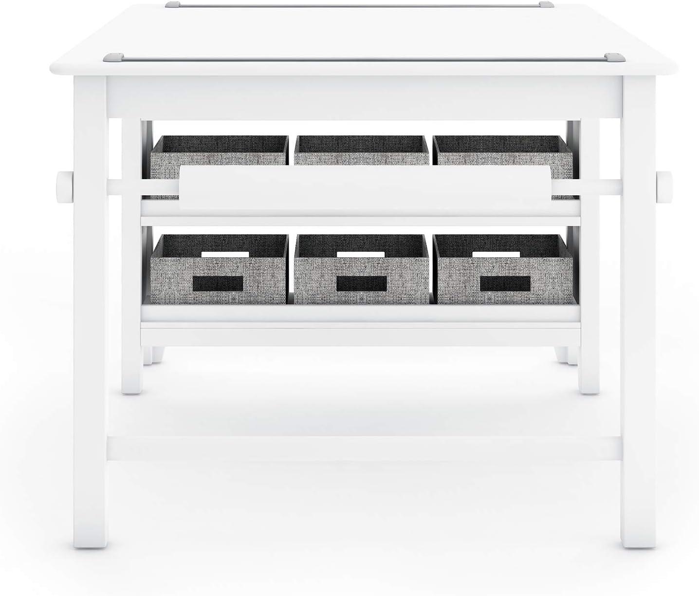 BUILT-IN STORAGE FOR ART SUPPLIES: Includes six fabric bins to store and organize paint, brushes, markers, pencils, scissors, crafting supplies, paper and more