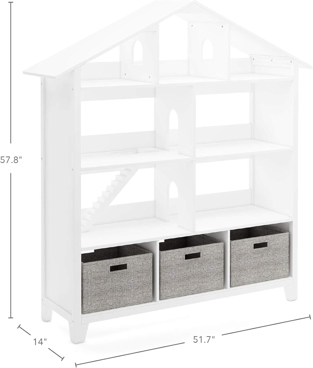 Martha Stewart Kids' Deluxe Dollhouse Bookcase - Gray: Kids Wooden Bookshelf and Tall Book Shelf Organizer with Toy Storage | Toddler Book Rack | Dollhouse Bookshelf | Playroom or Bedroom Storage(Linen White)
