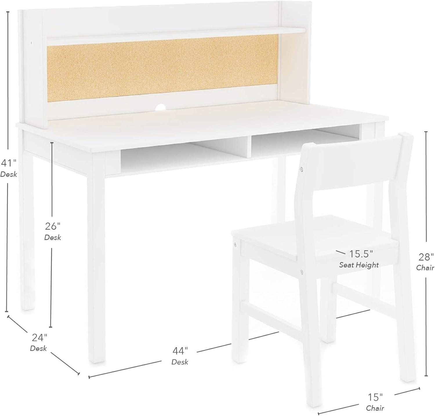 WOODEN KIDS' DESK AND CHAIR SET WITH STORAGE HUTCH : This sturdy wooden desk set for kids includes a comfortable chair and a work area that provides your child with the perfect study space or crafting area.