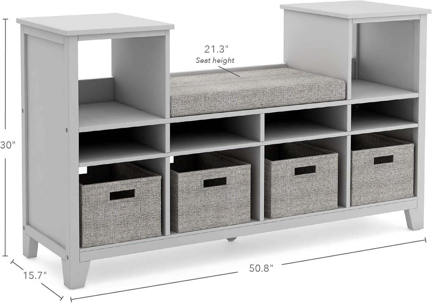Martha Stewart Kids' Reading Nook - Gray: Wooden Storage Bench Bookcase Organizer with Seat Cushion, Book Shelves, and Fabric Bins for Bedroom or Playroom(Grey)
