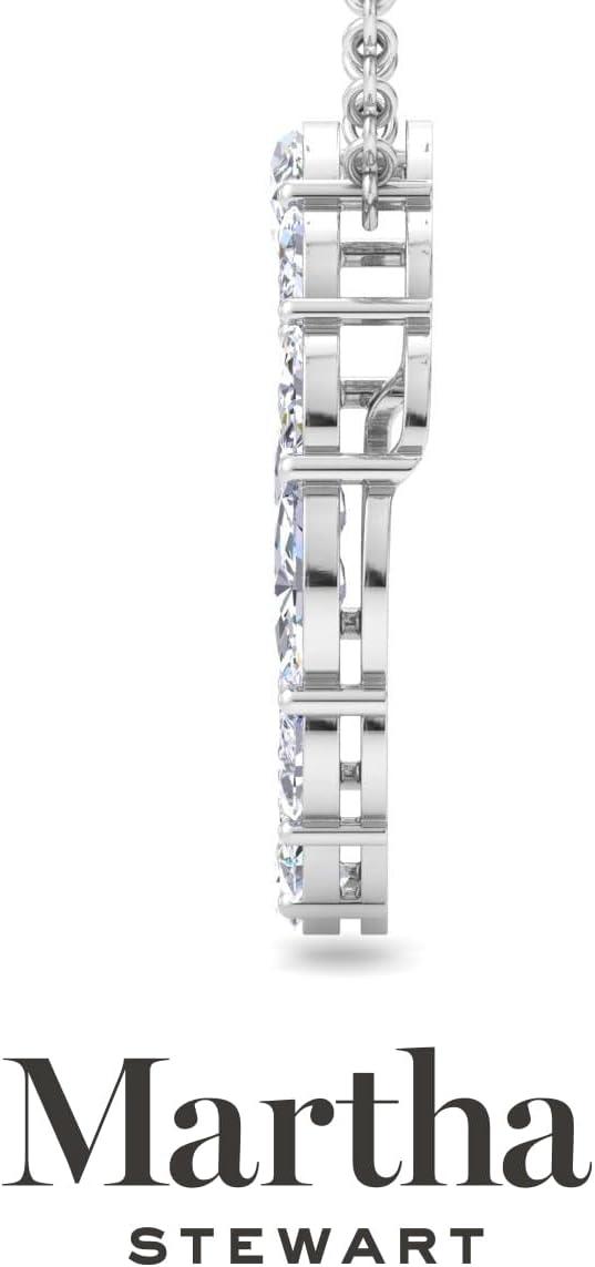 Showcasing class, style and timeless sophistication, the Martha Stewart fine jewelry collection is here to be celebrated. This Martha Stewart lab grown diamond necklace features 12 marquise shape lab grown diamonds including a 1 carat lab grown diamond in G-H color, VS clarity totaling 4 carats. This necklace is available in 14 karat white gold and 14 karat yellow gold. The chain is 17 inches long with options to wear at 15 and 16 inches. There is a secure lobster-claw clasp and is 1 1/4 inches in diameter. Whether worn for a special occasion or to add a touch of elegance to daily wear, this necklace is sure to become a treasured heirloom. Martha Stewart’s unwavering attention to detail and dedication to quality are evident in every piece, making this collection a celebration of timeless beauty and exceptional craftsmanship.