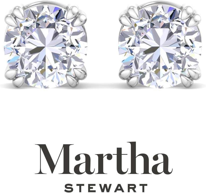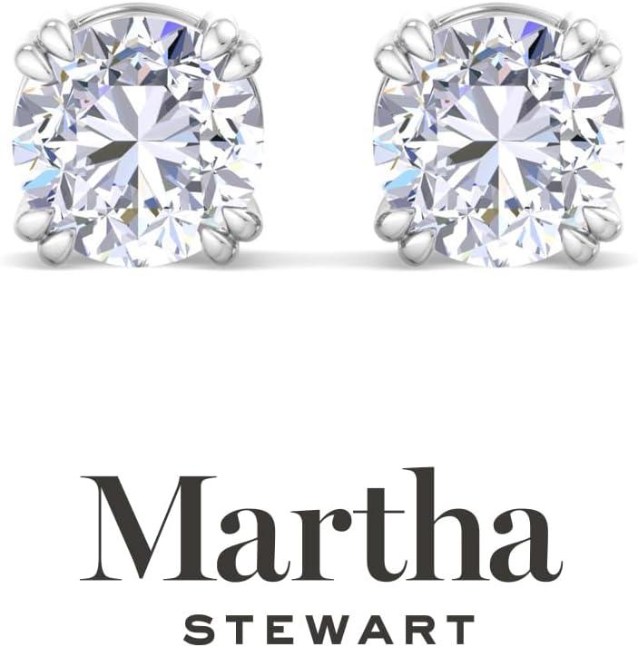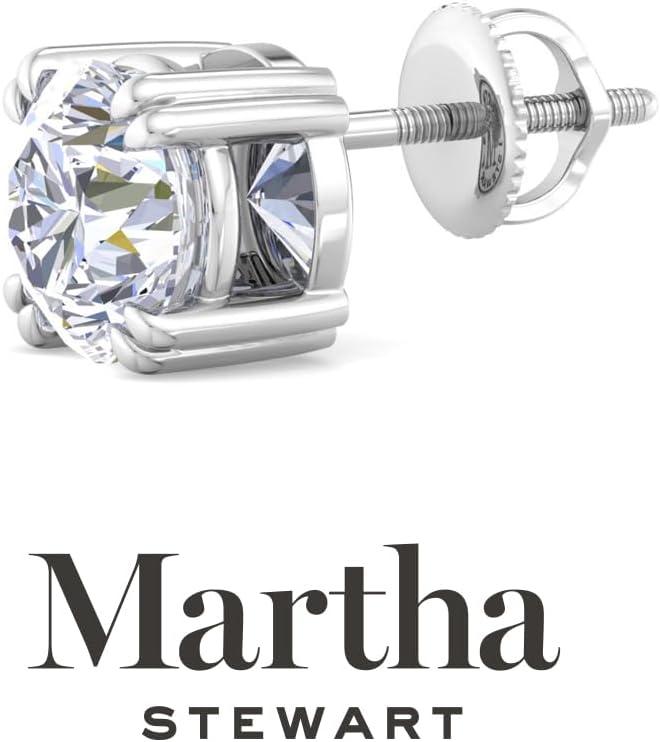 Martha Stewart Lab Grown Diamond Stud Earrings in 14 Karat Gold, Lab Grown Diamond Earrings for Women(white-gold)