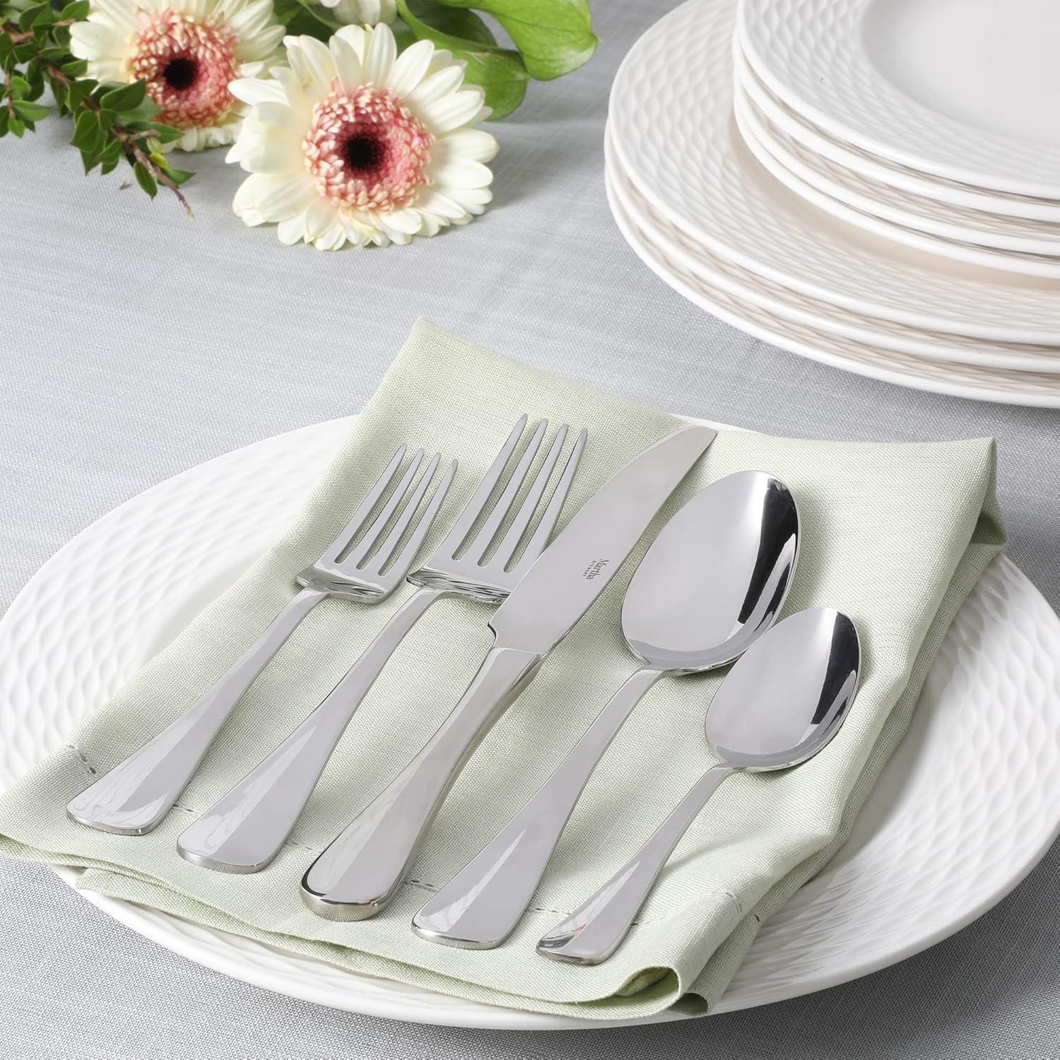 The joy of entertaining runs (and lasts) all year. Transcending seasons and occasions, impressive entertaining is a year-round task for both avid and aspiring hosts. From the carefully-prepared dishes to beautifully-presented tablescapes, no detail is too small to leave a lingering smile and a lasting impression. The Laurentide 20-piece Stainless Steel Flatware Set from Martha Stewart is a quiet addition to any place setting. Crafted from stainless steel with a distinct matte-stone finish, each silverware lends a vintage-inspired accent to the table. This flatware set offers full service for four to host a weekend brunch or a casual dinner with a small group of friends. Each utensil offers an intuitive grip to confidently cut or scoop any dish with finesse and comfort. Dishwasher safe.
