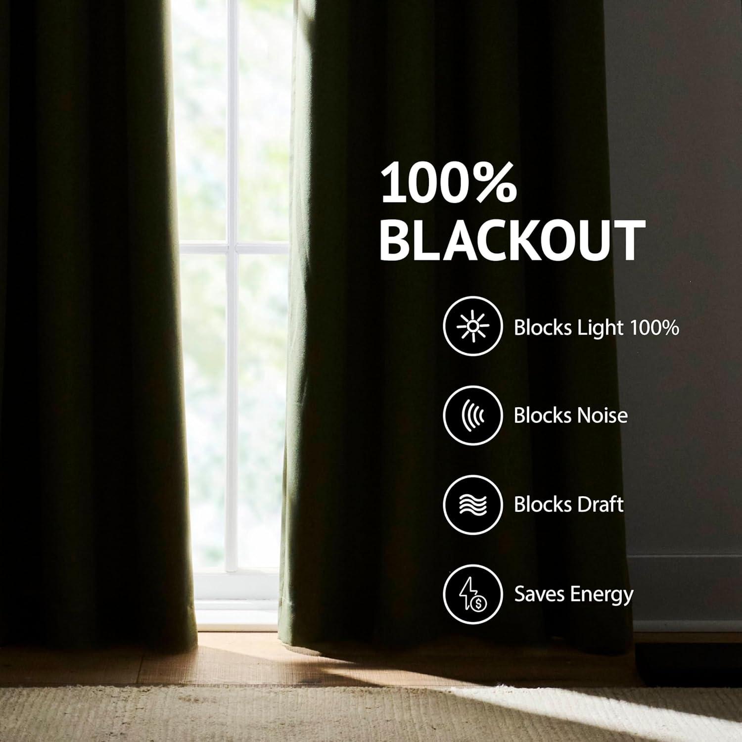 Martha Stewart Lucca Velvet Blackout Back Tab Window Curtain Panel Pair, 95", Linen Beige(Green)