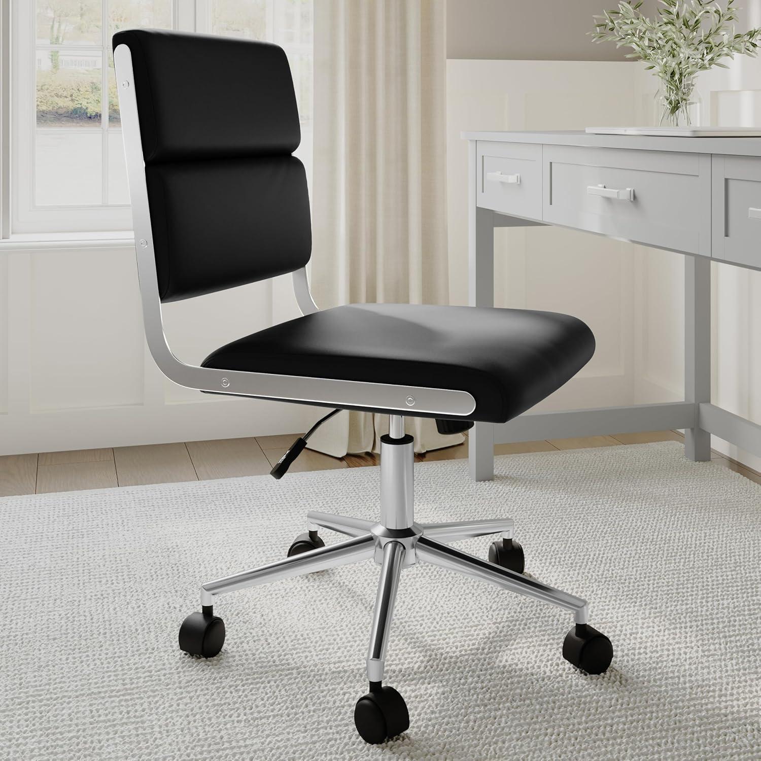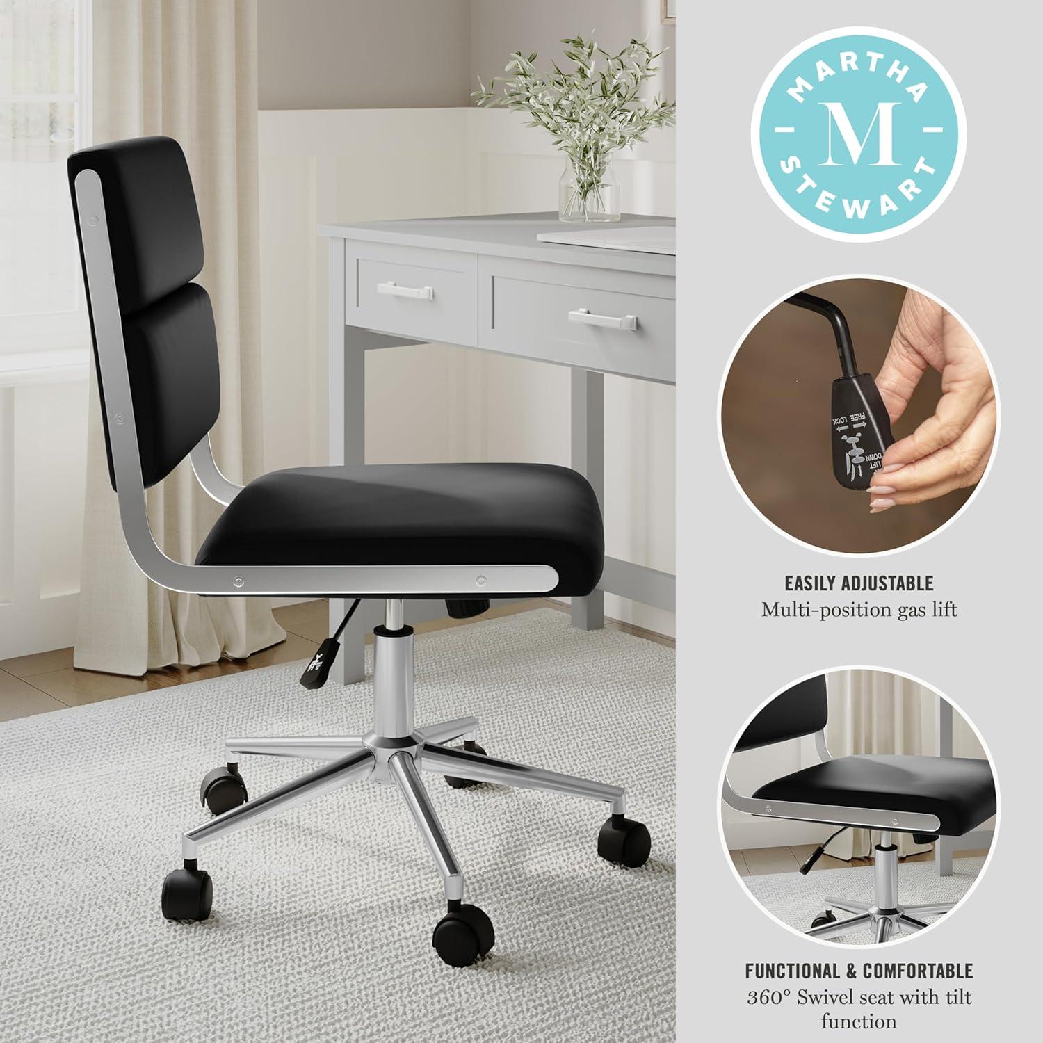 Bring a modern aesthetic to your home’s corporate nook with the Martha Stewart Lulu Office Chair with a sleek, armless design that adds a chic touch to any home workspace and fits perfectly with most desks, keeping your space tidy and neat
